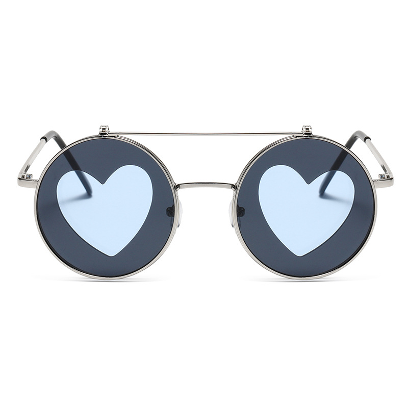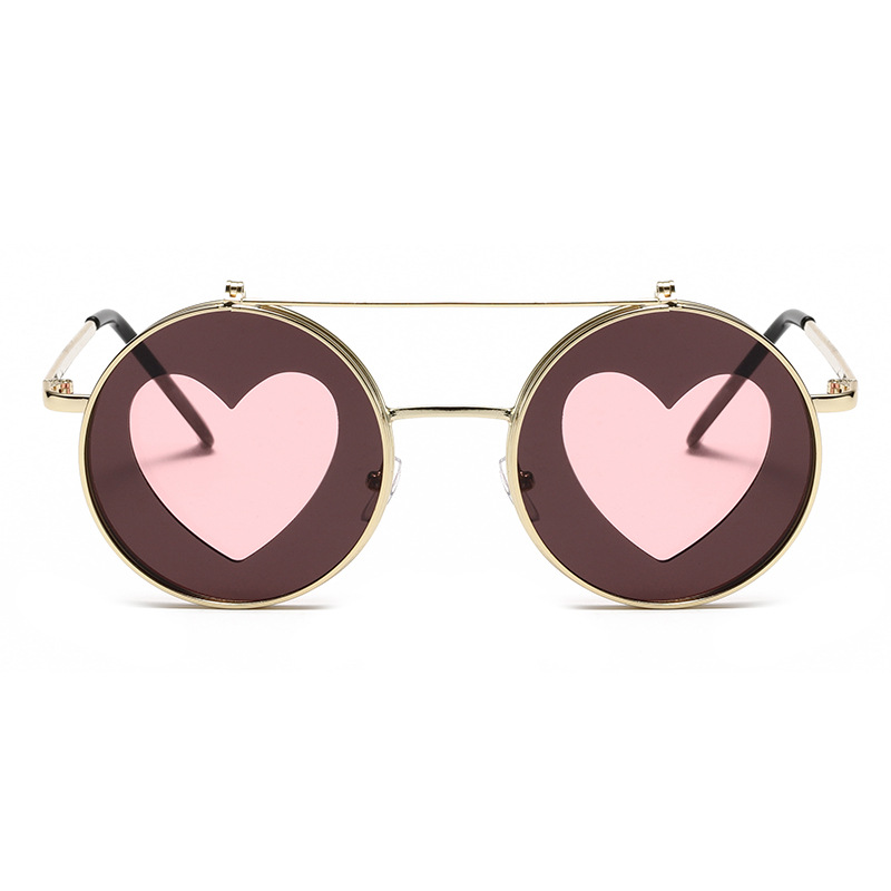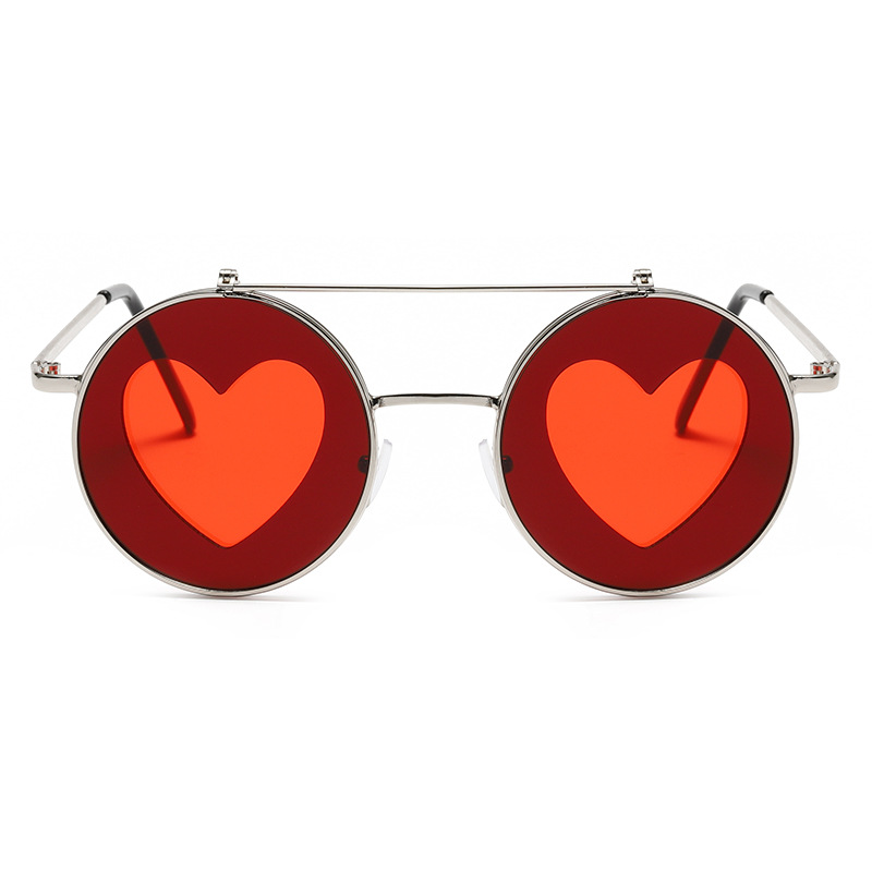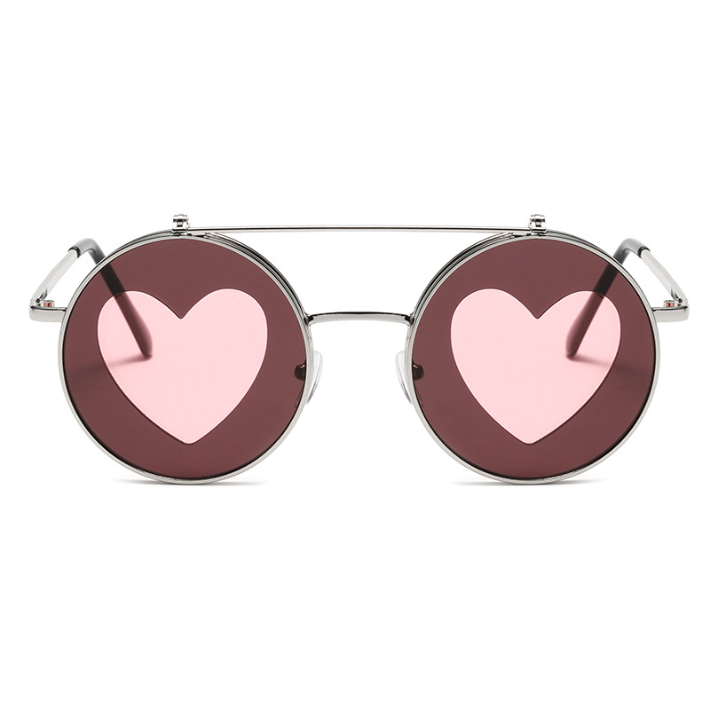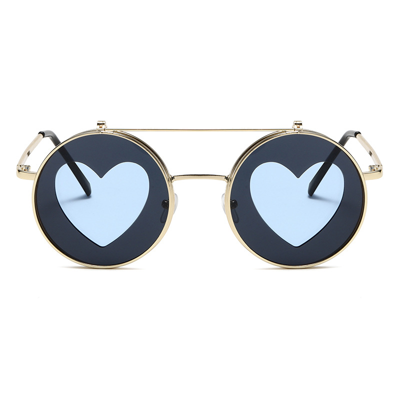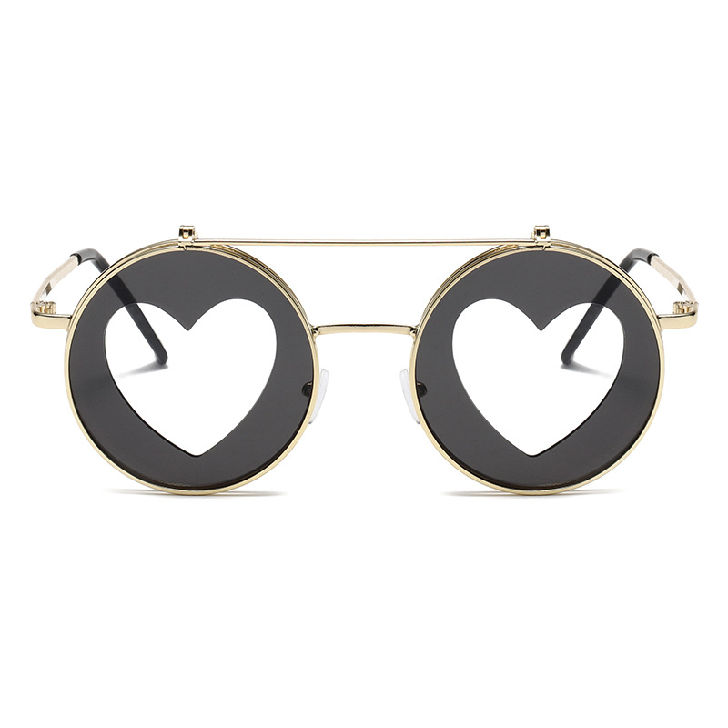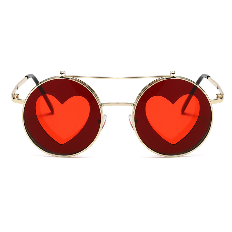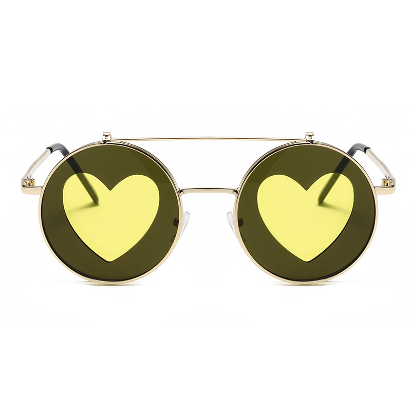새로운 금속 대형 얼굴 슬리밍 선글라스, 맞춤형 원형 프레임 플립 하트 선글라스, 패셔너블한 스트리트 스타일 선글라스