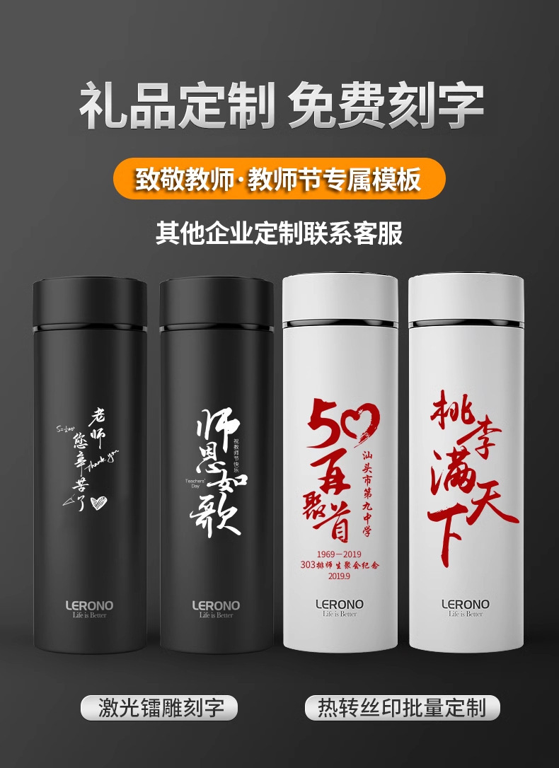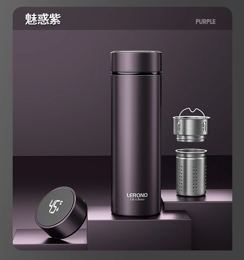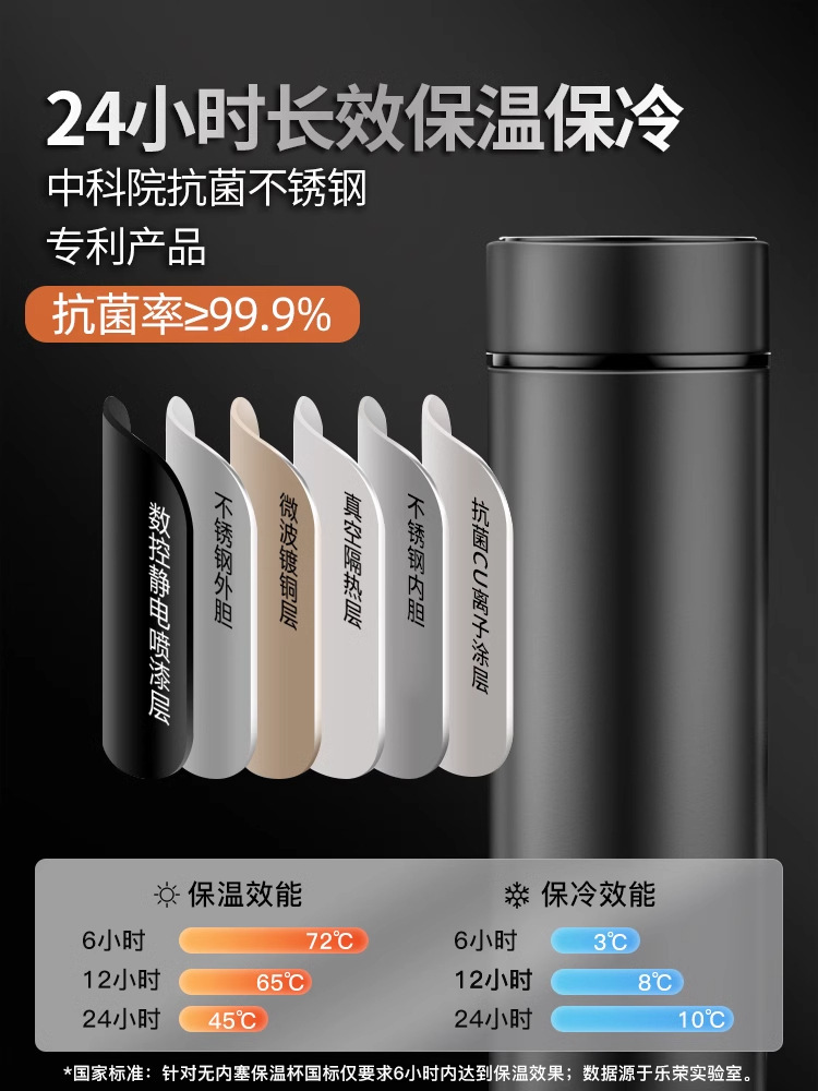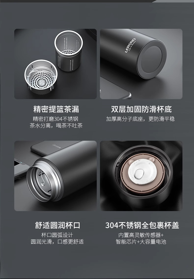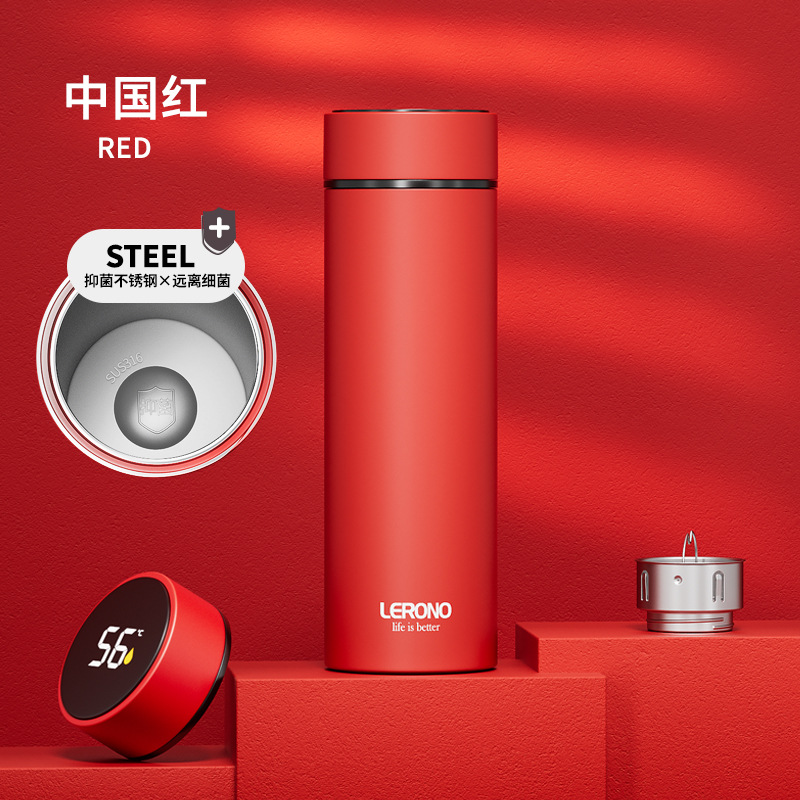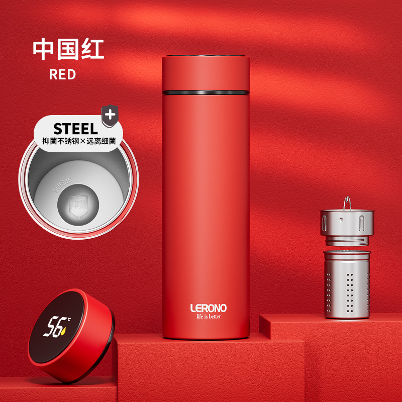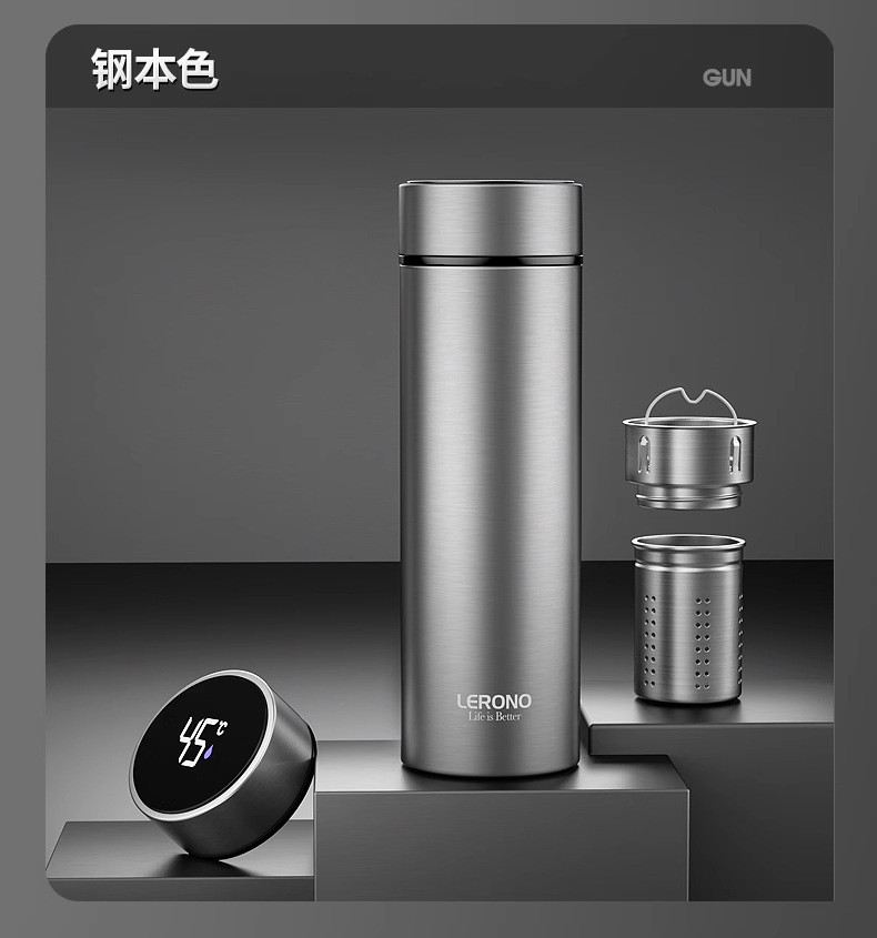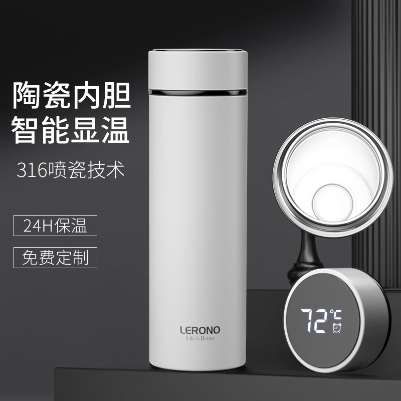 가벼운 고급 스테인레스 스틸 보온병 컵 316 남성과 여성을위한 스마트 워터 컵 차와 물 분리 고가치 선물 맞춤형 컵