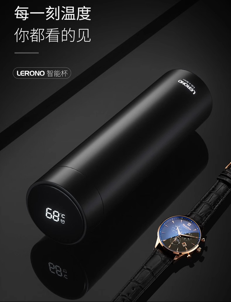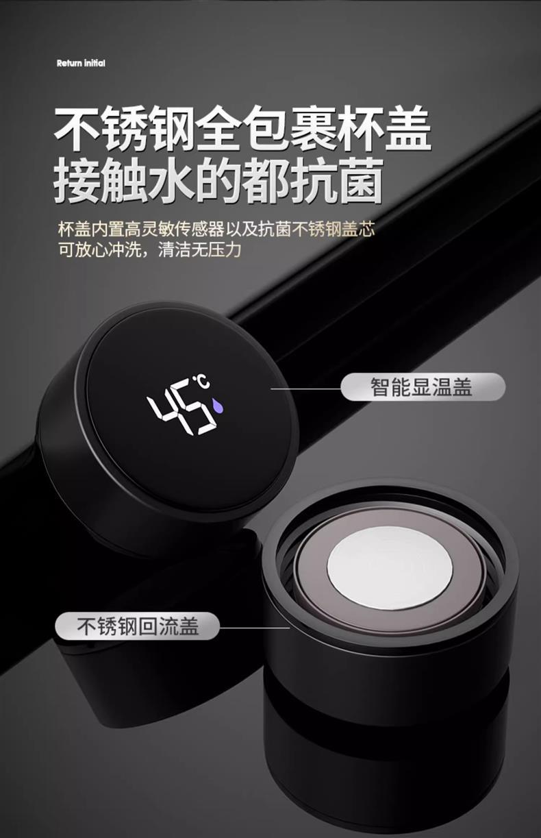 • [항균 라이너 + 지능형 온도 표시] 블랙 500ML-선물 상자 스타일
