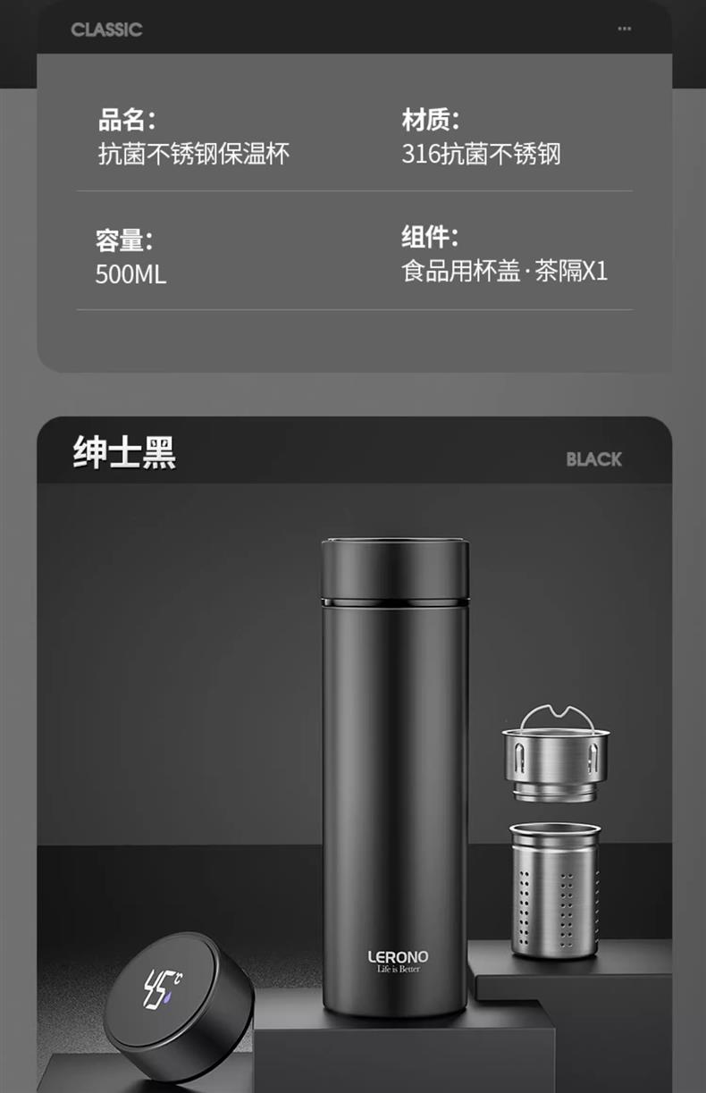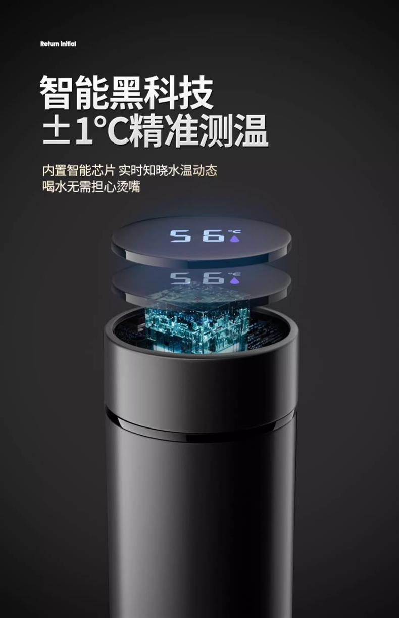 • [316 스테인레스 스틸 + 지능형 온도 표시] 블랙 500ML-표준 모델