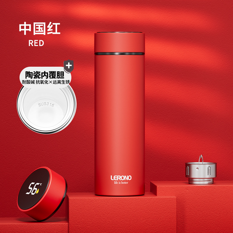 • 【세라믹 내벽 + 스마트 온도 표시】 다홍색 500ML - 선물 세트