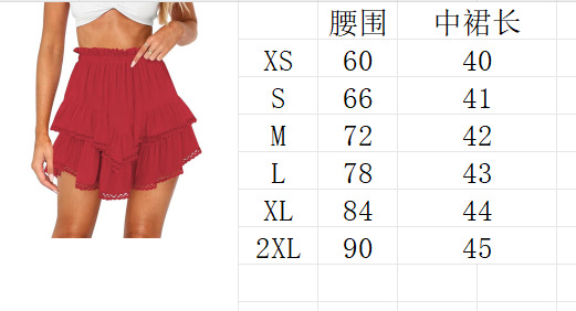유럽과 미국 여성의 우아한 반바지, 러플 스커트, 미니 스커트, 테니스 반바지, 여름 반바지, 단색 레이스