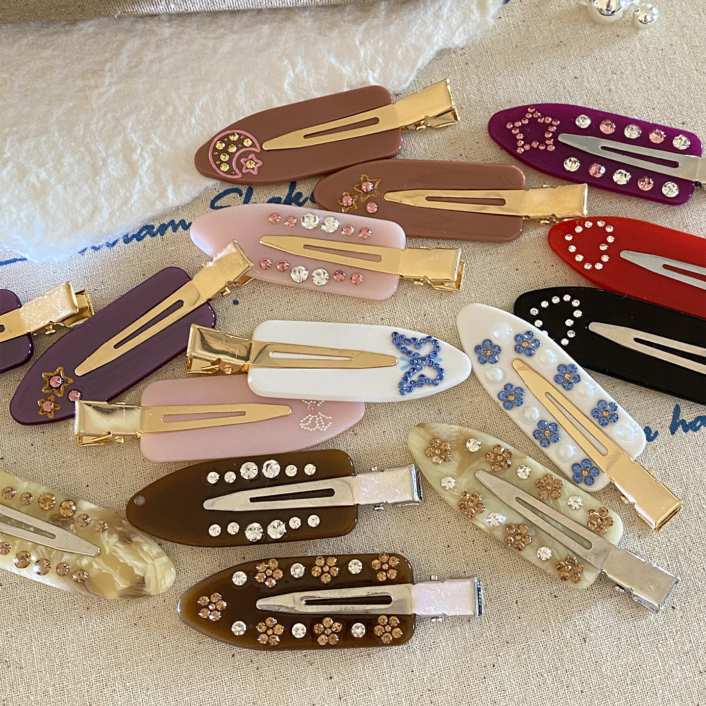 여성을 위한 프렌치 블로거 스타일 다이아몬드가 박힌 아세테이트 머리핀, 틈새 디자인, 소녀용 사이드 클립, 머리 앞머리 클립, 헤어 액세서리스토어 가기