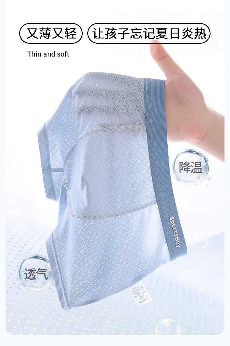 [재고 있음] 소년 속옷 7A 항균 얼음 실크 속옷 소년 속옷 통기성 메쉬 여름 얇은 복서 팬티