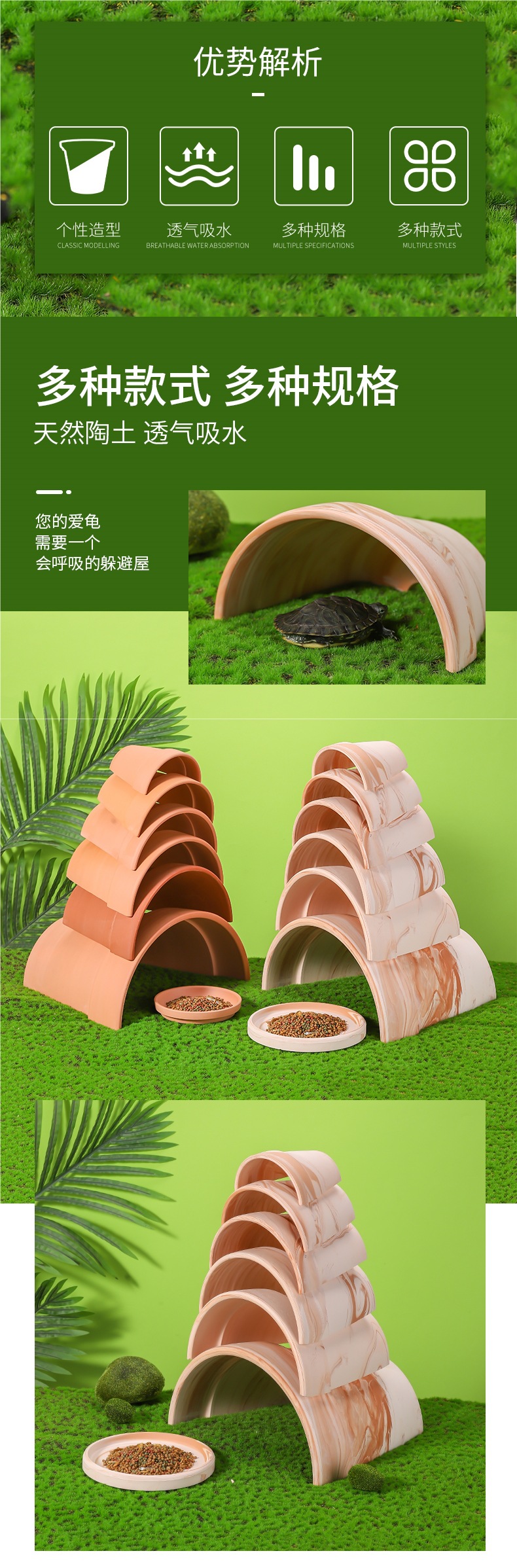 거북이, 물고기, 새우 피난처, 동굴 타일, 등반 애완동물, 노란색 가장자리 거북이, 붉은 도자기 피난처, 수조 조경 장식 테라스