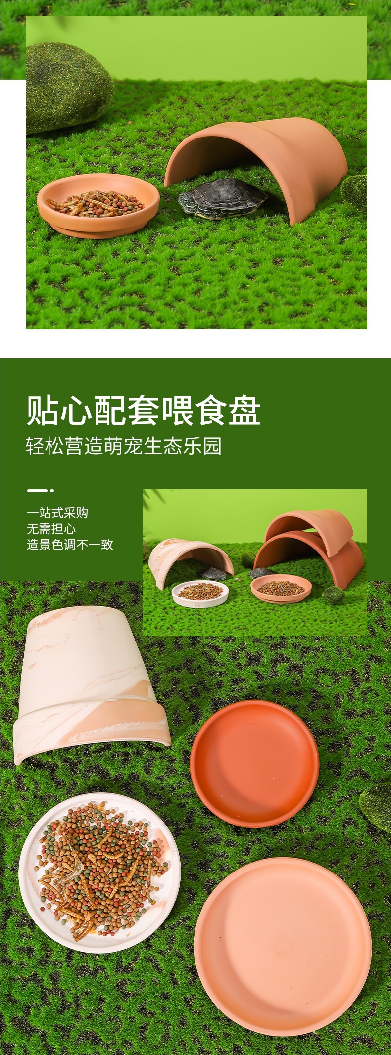 • 새로운 색상 쉘터 하우스 20cm 2개 + 9CM 먹이 트레이 1개