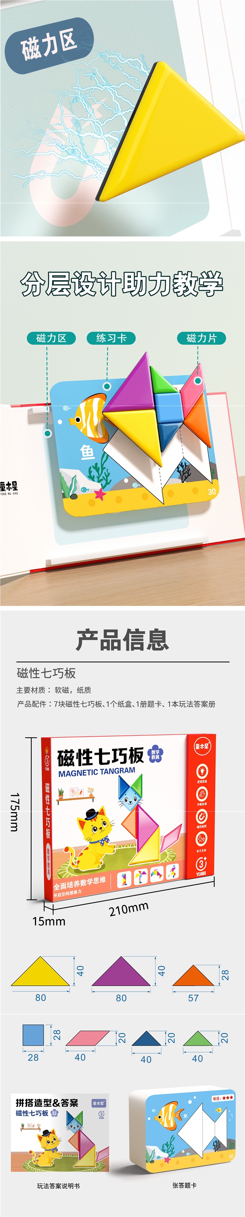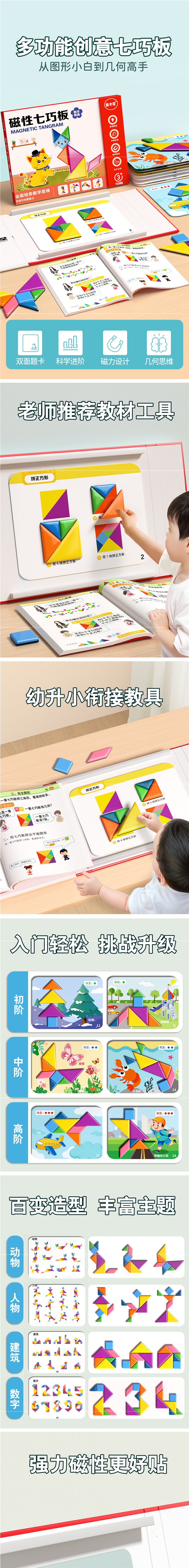• 자석 칠교놀이 [30페이지의 상황 질문 카드 + 108개의 독립적인 모양 질문 책] 동기식 소형