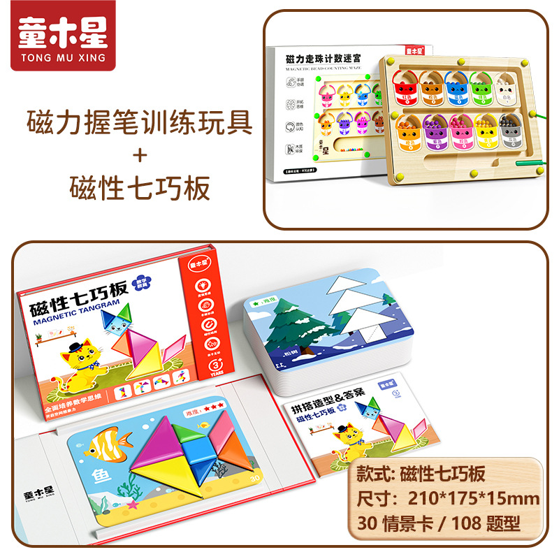 • 자석 칠교놀이 교구 + 자석 미로 공 [펜 쥐기 훈련/집중력 향상]