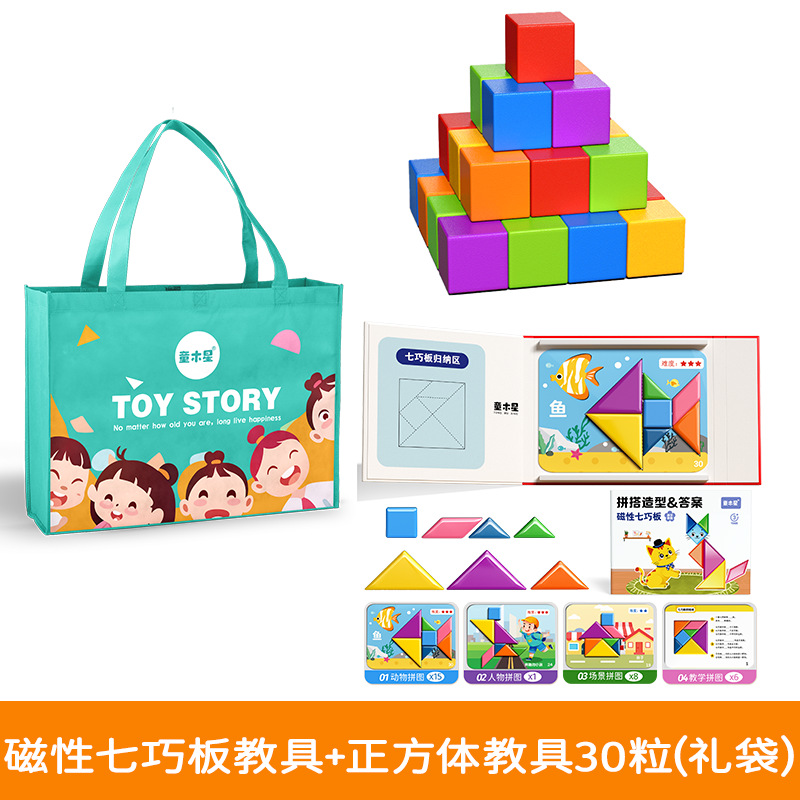 • 자석 칠교판 교구 + 사각 볼륨 나무 교구 30개 [공간적 상상력 훈련]