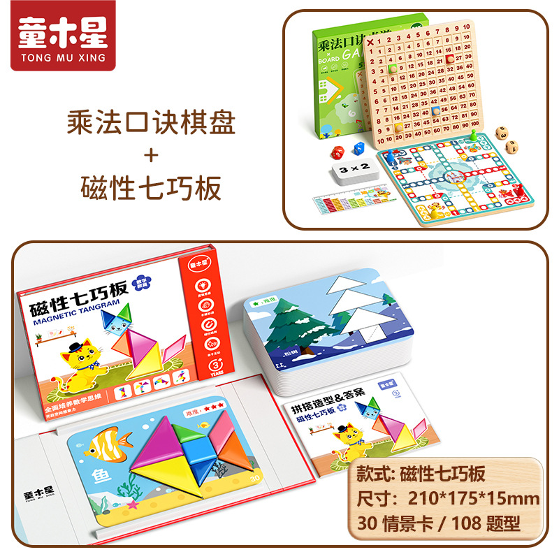 • 자석 칠교놀이 교구 + 구구단 보드게임 [구구단 + 플라잉 체스]