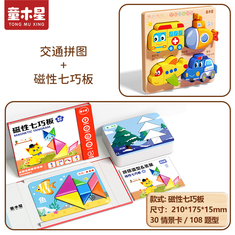 • 자석 칠교판 교구 + 교통 퍼즐 [손과 눈의 협응 운동]
