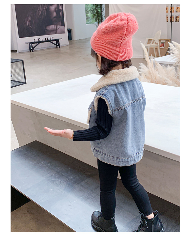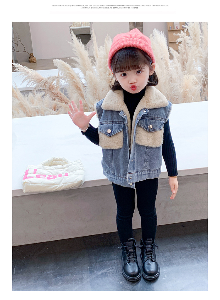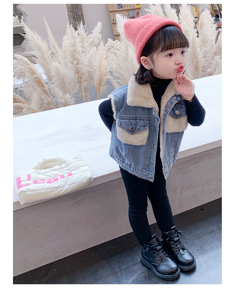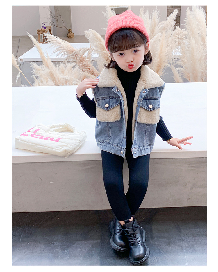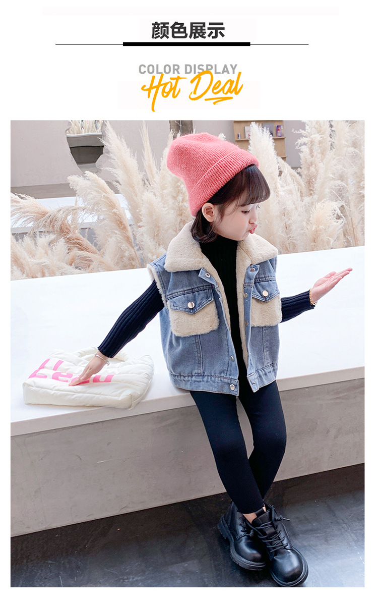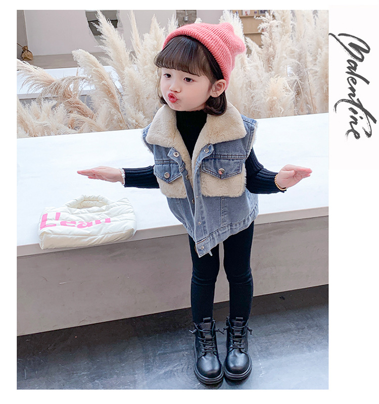 여자 2023 새로운 가을, 겨울 조끼 어린이 벨벳 두꺼운 외국 스타일 겉옷 아기 데님 재킷 가을