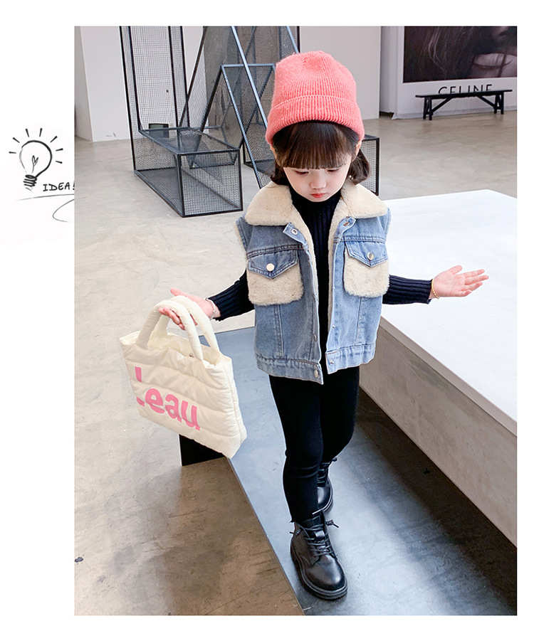 여자 2023 새로운 가을, 겨울 조끼 어린이 벨벳 두꺼운 외국 스타일 겉옷 아기 데님 재킷 가을스토어 가기