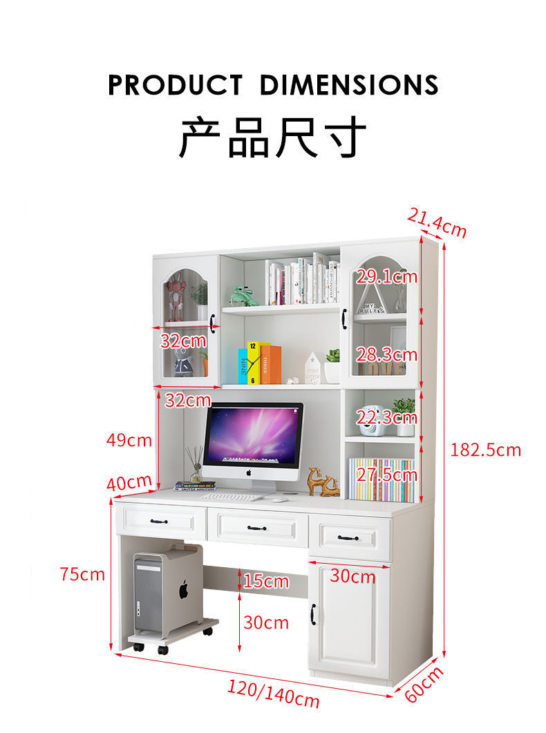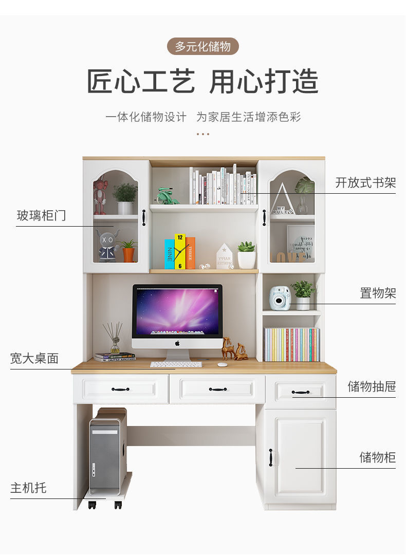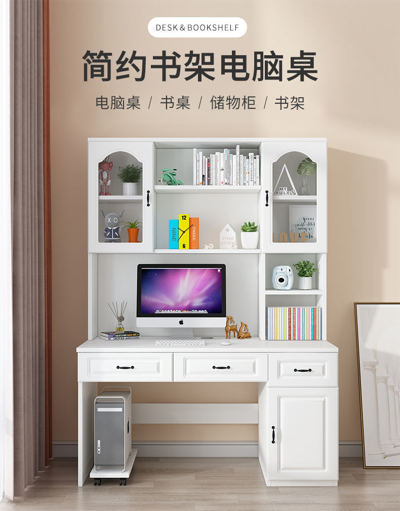단단한 나무 책상 책장 조합 테이블 컴퓨터 책상 데스크탑 테이블 홈 테이블 어린이 침실 학습 테이블