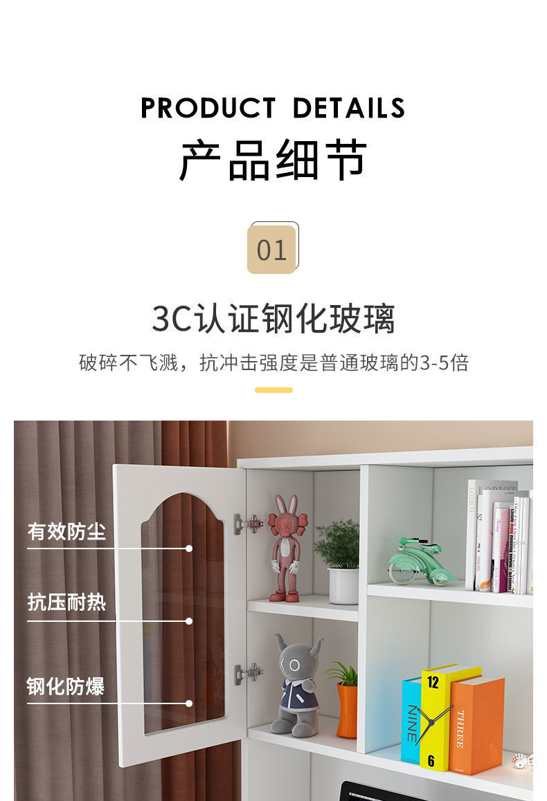 • 따뜻한 흰색 100cm 서랍 2개 + 책장