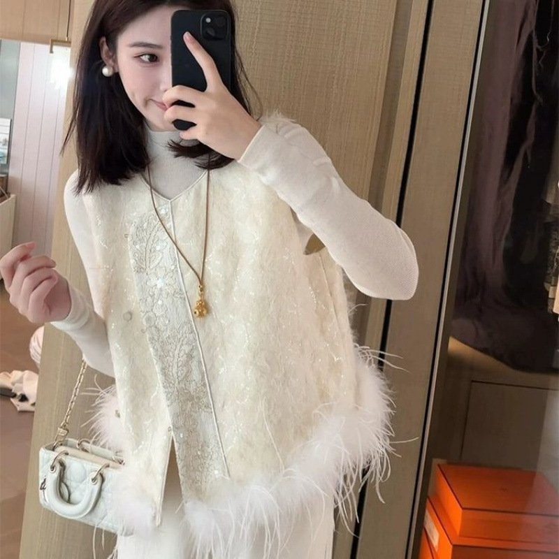 Xiangfeng의 새로운 스타일 타조 중국 스타일 조끼 여성을위한 중국 스타일 재킷 2025 자카드 탑 스플 라이스 기질 겉옷 조끼스토어 가기