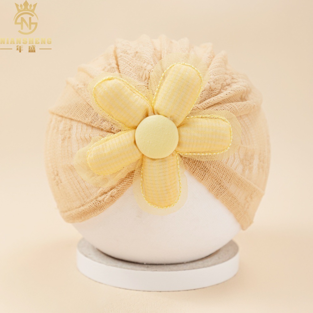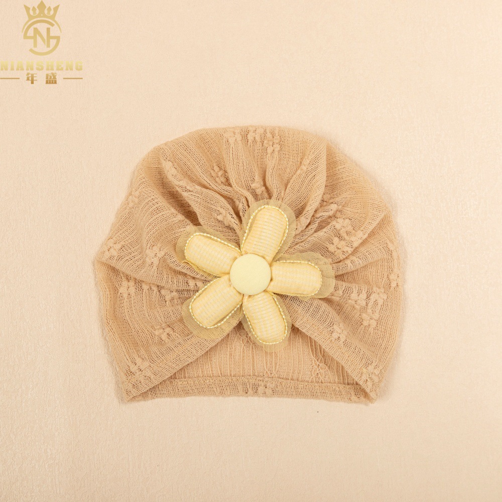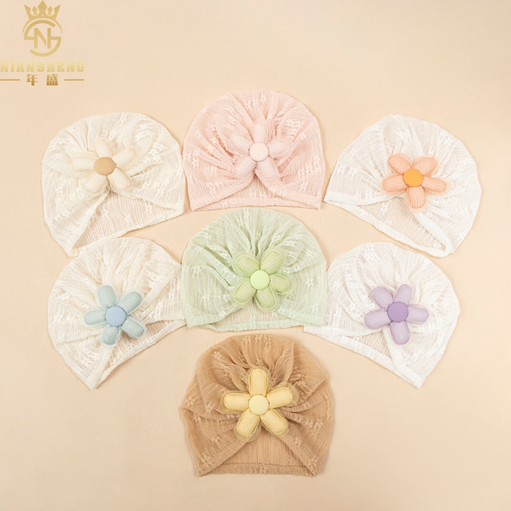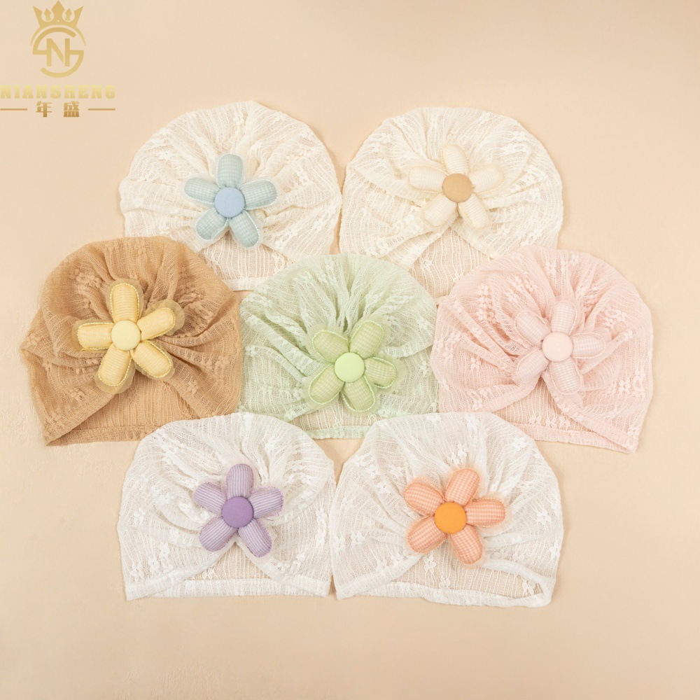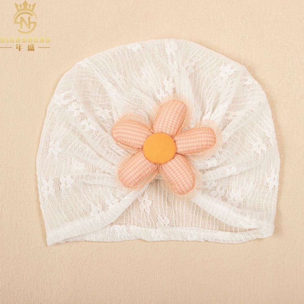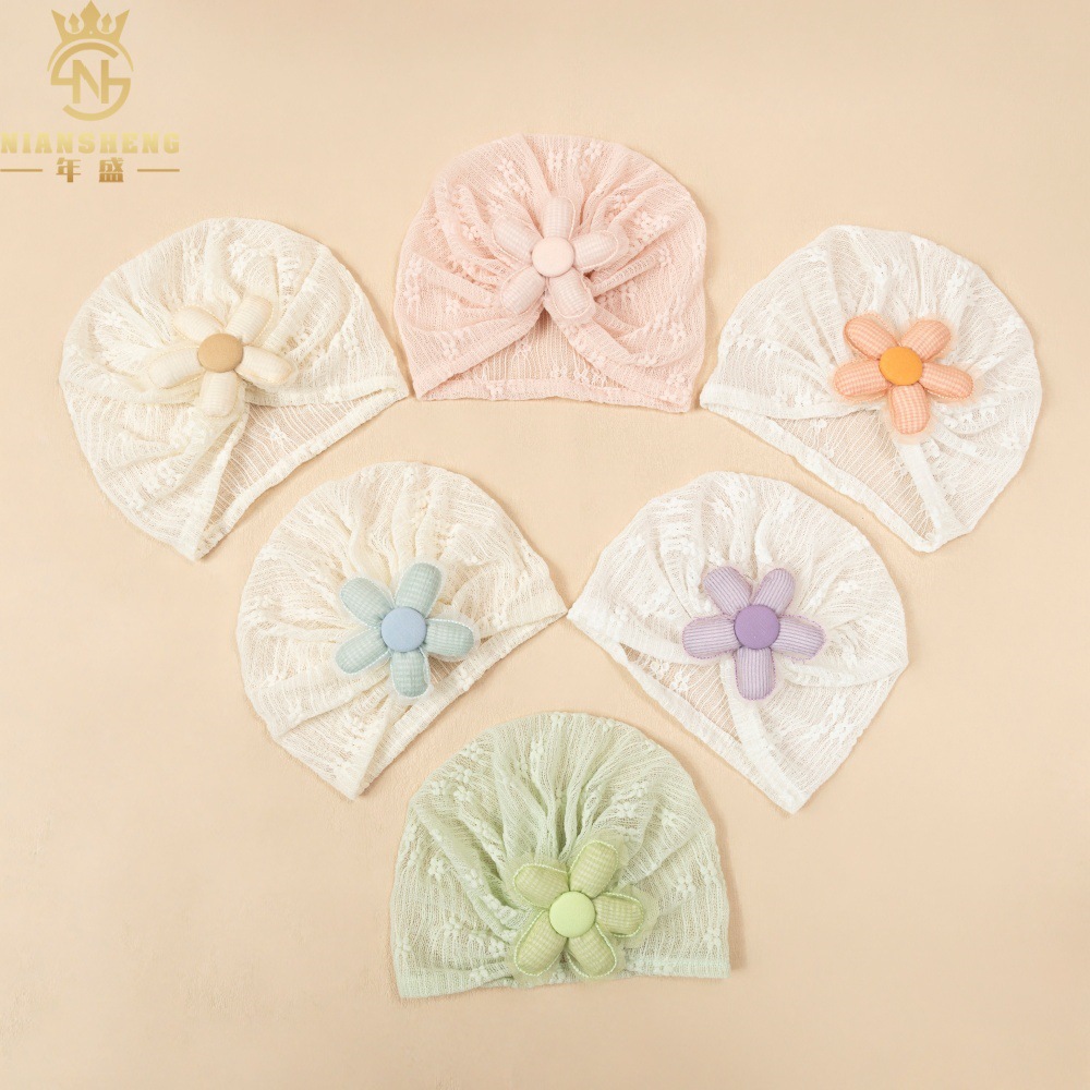아마존의 새로운 어린이 레이스 수 놓은 모자 해바라기 아기 통기성 태아 모자 아기 다섯 꽃잎 꽃 인도 모자