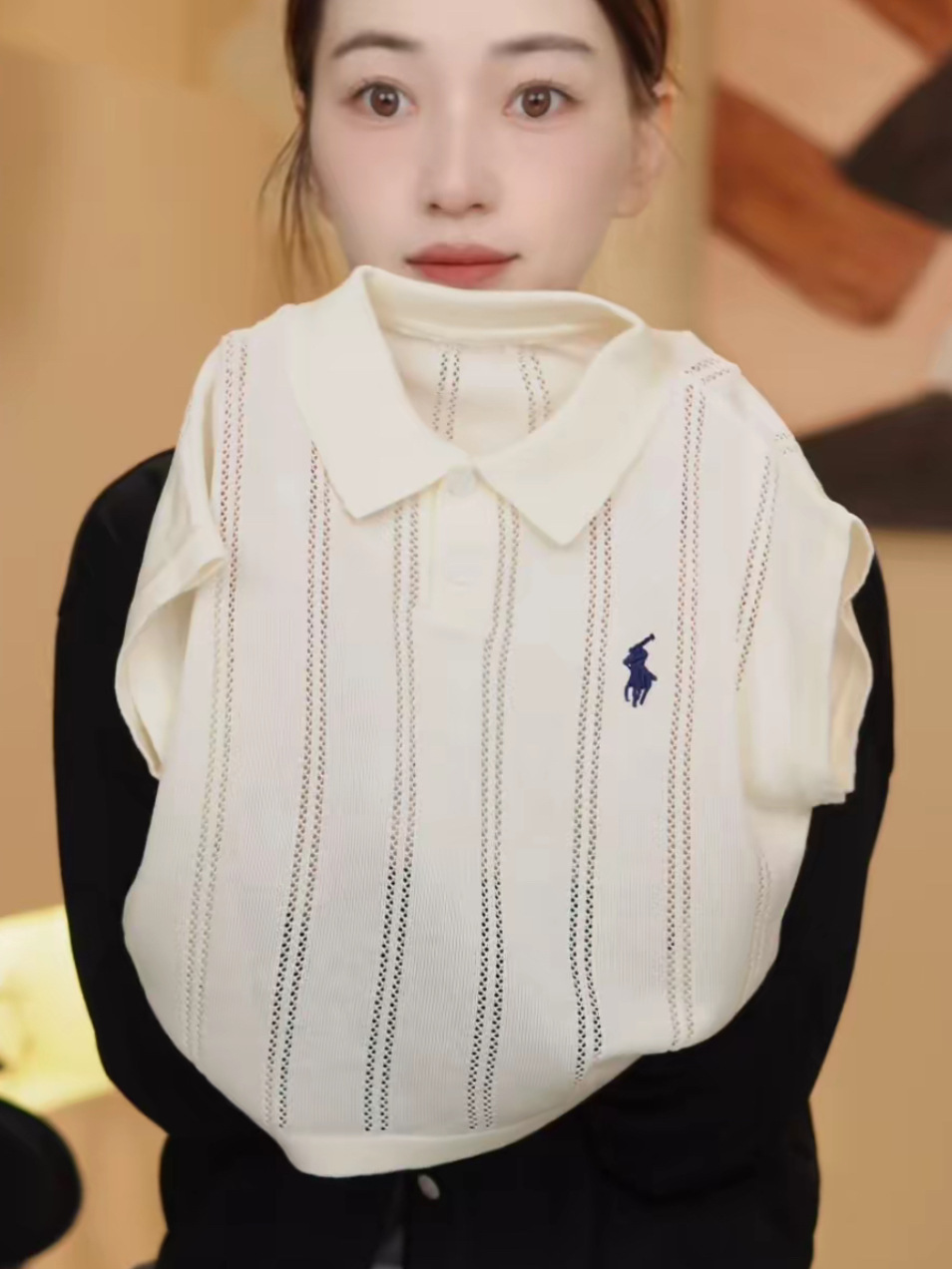 여름 신작 아동복 복고풍 폴로 칼라 자수 스웨터 비행기 소매 반팔 슬림 탑스토어 가기
