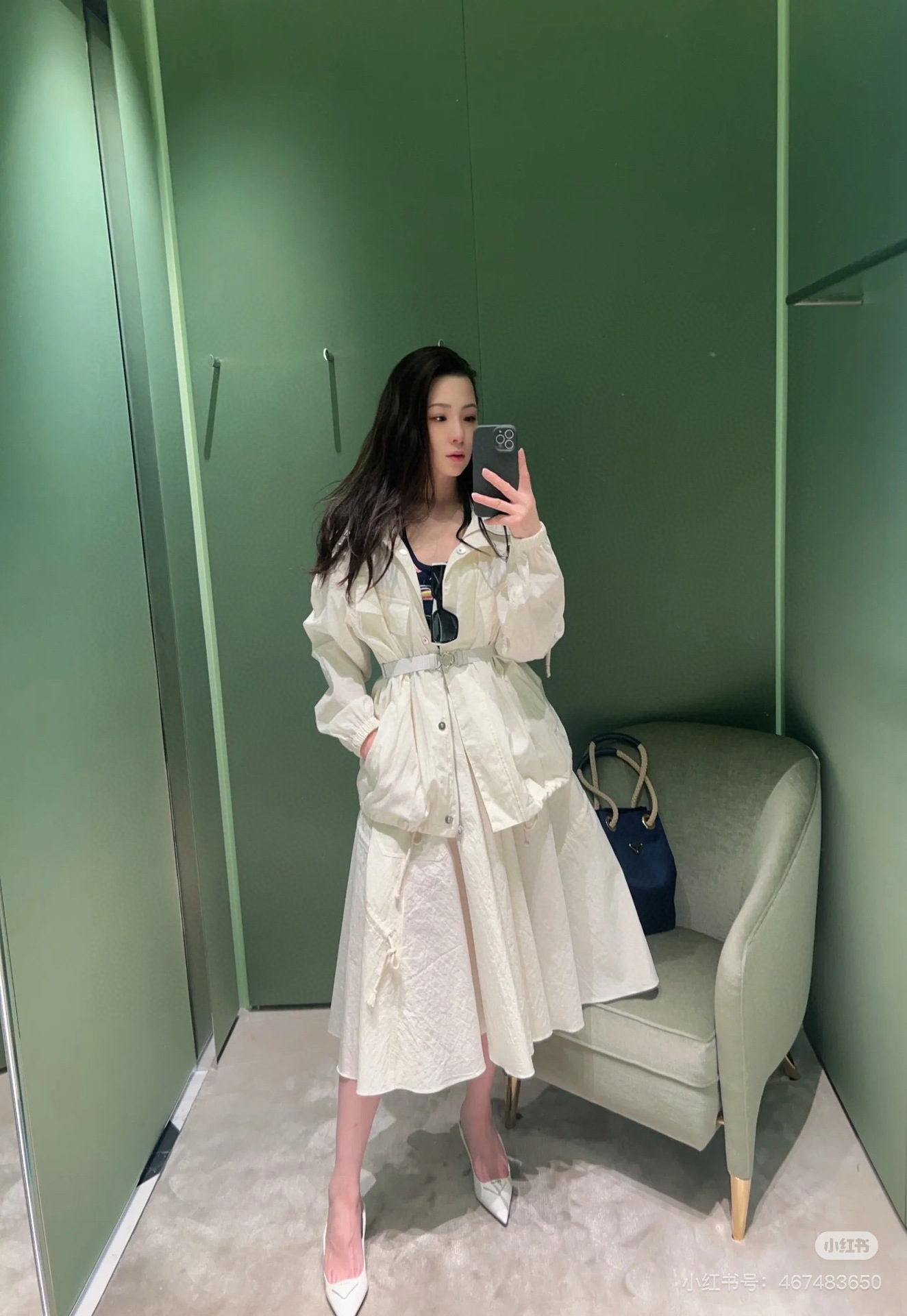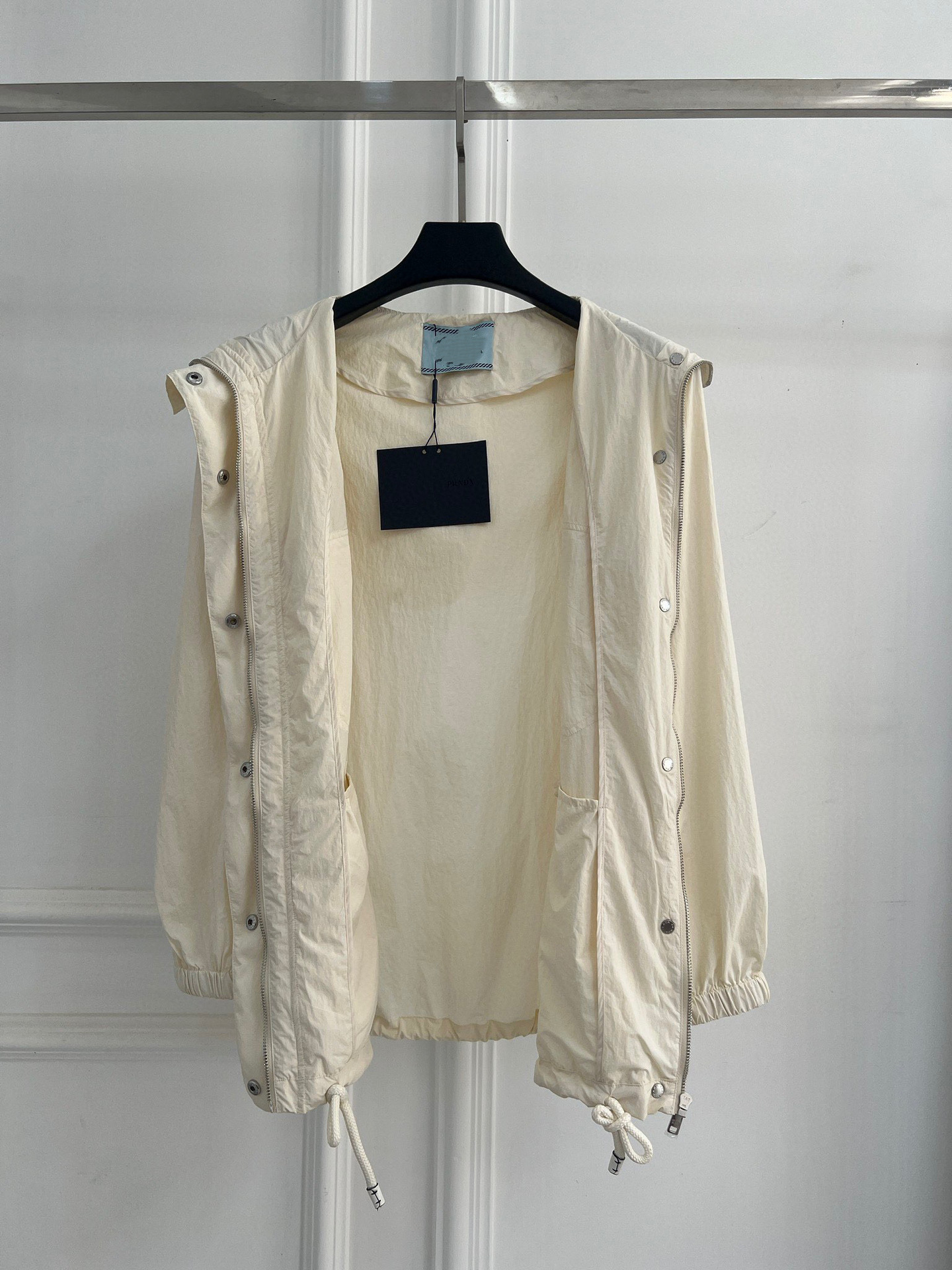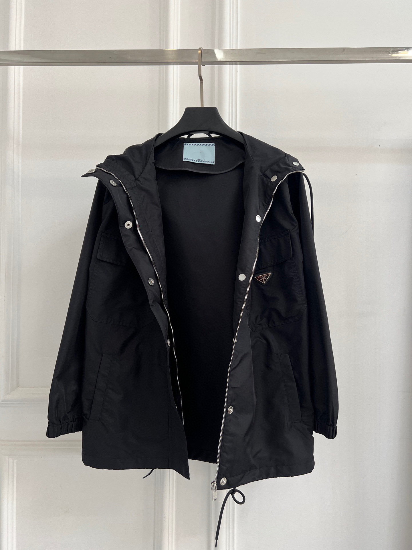 봄 신작 삼각형 메탈 중간 길이 대형 포켓 허리 후드 윈드 브레이커 코트 여성용 재킷 탑스토어 가기
