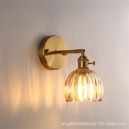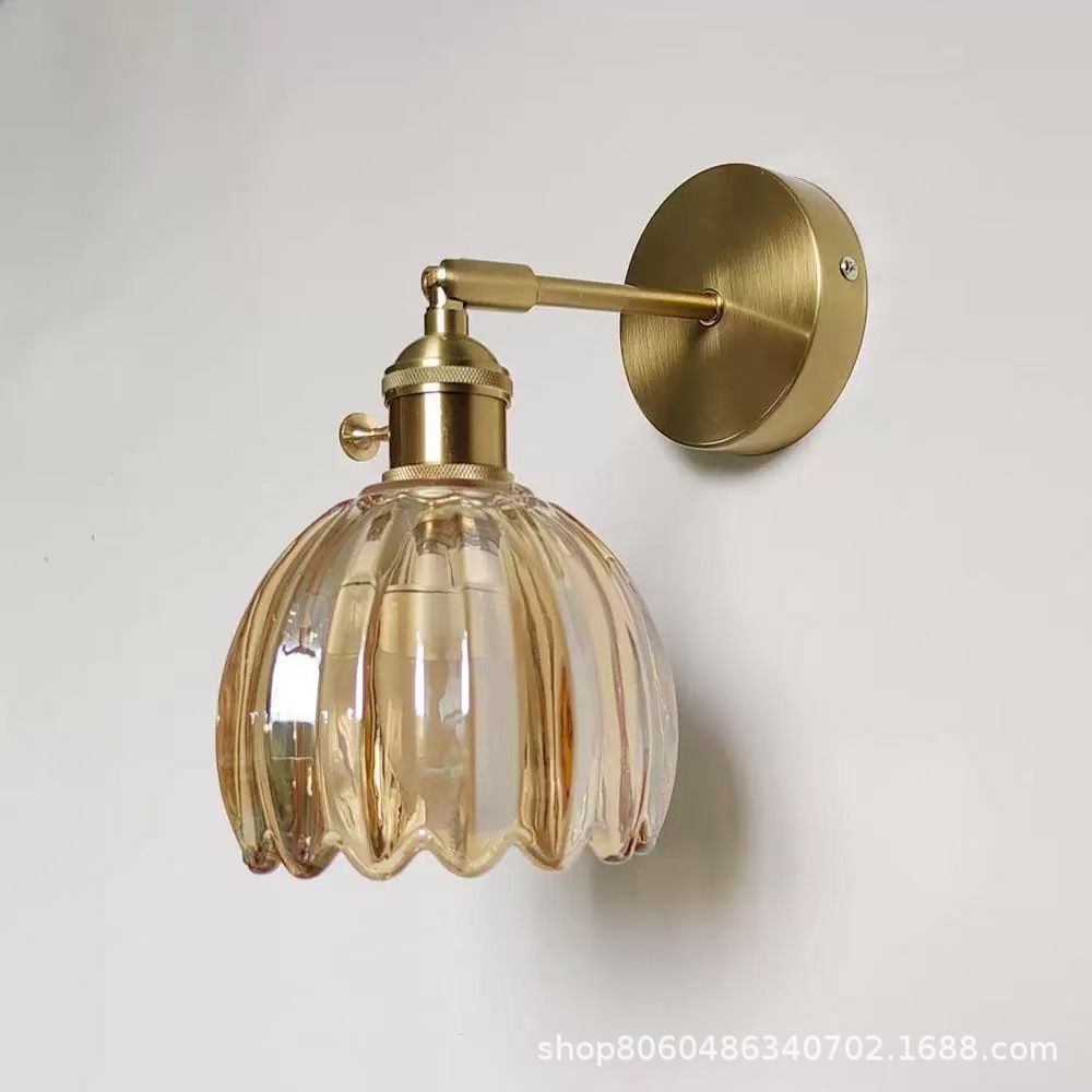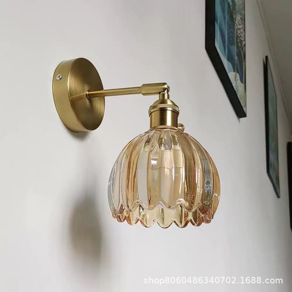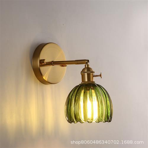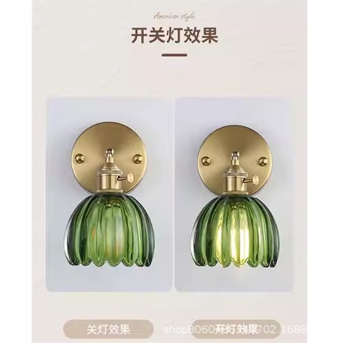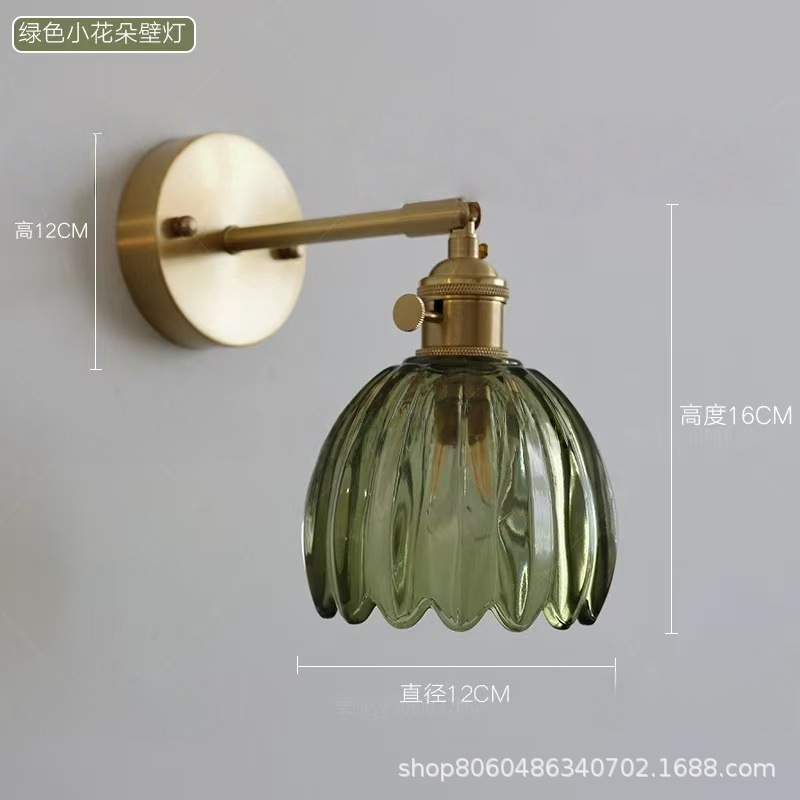가벼운 럭셔리 일본 복고풍 중산 모던 심플 침대 옆 거울 전면 조명 아마존 대외 무역 녹색 꽃 유리 벽 램프스토어 가기