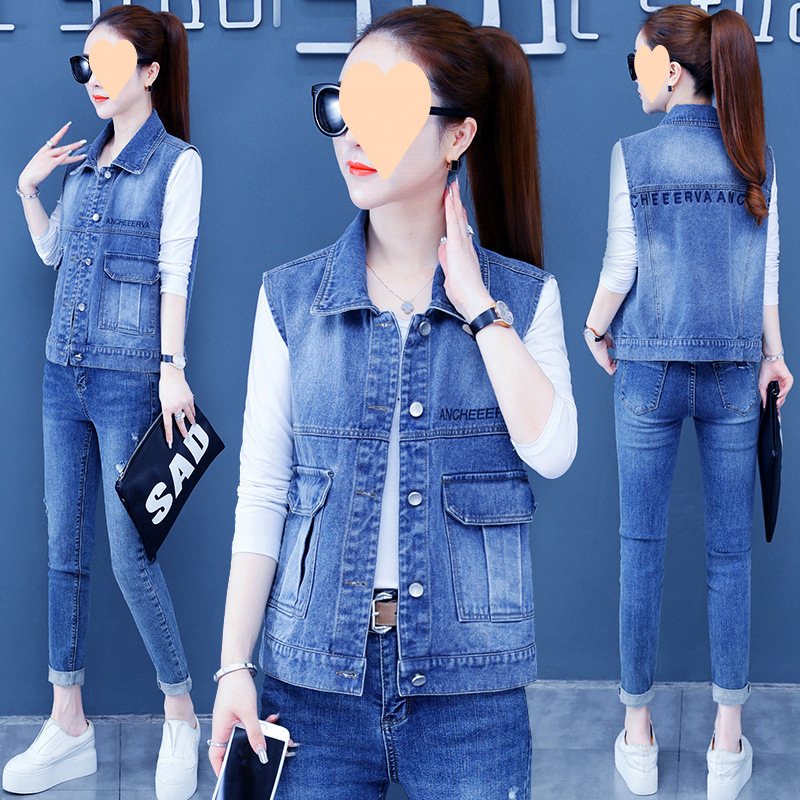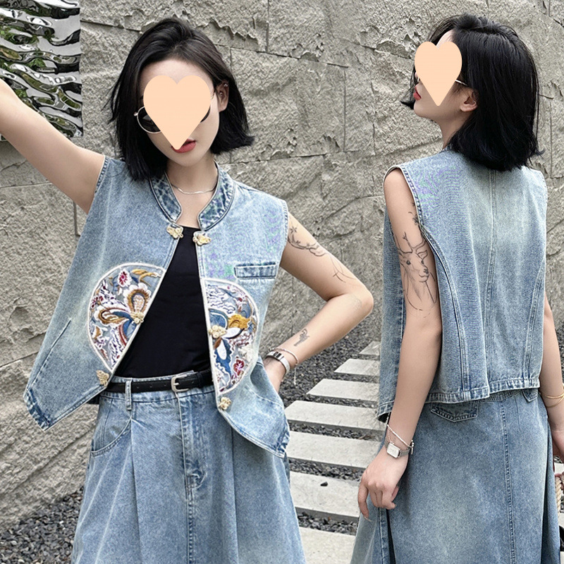 여성을위한 중국 스타일 데님 조끼 봄과 여름 새로운 유행 맞춤형 작은 데님 탑 여성 조끼 조끼