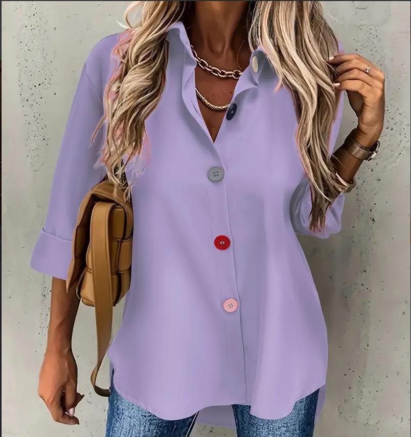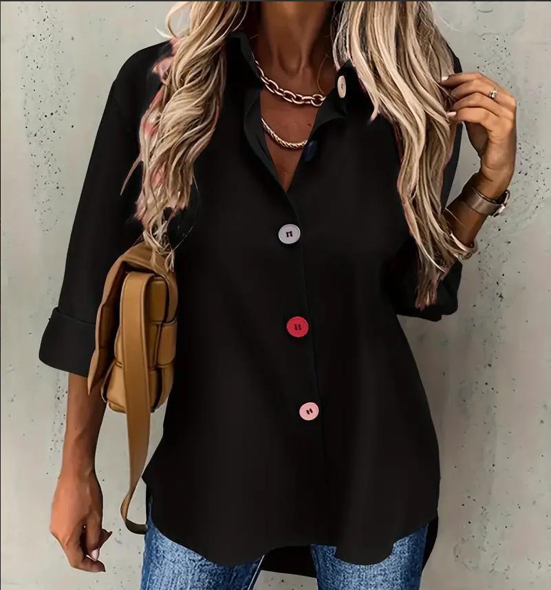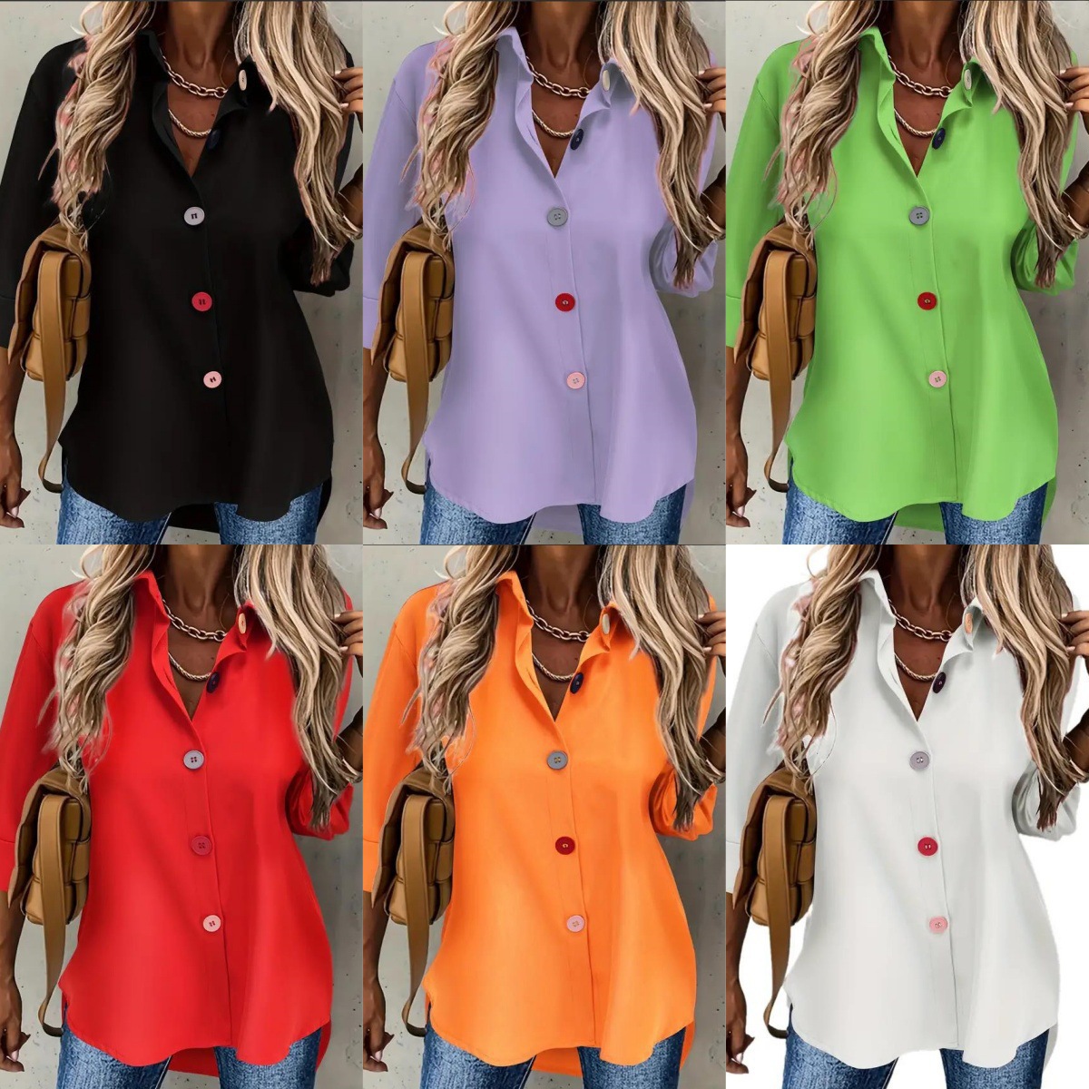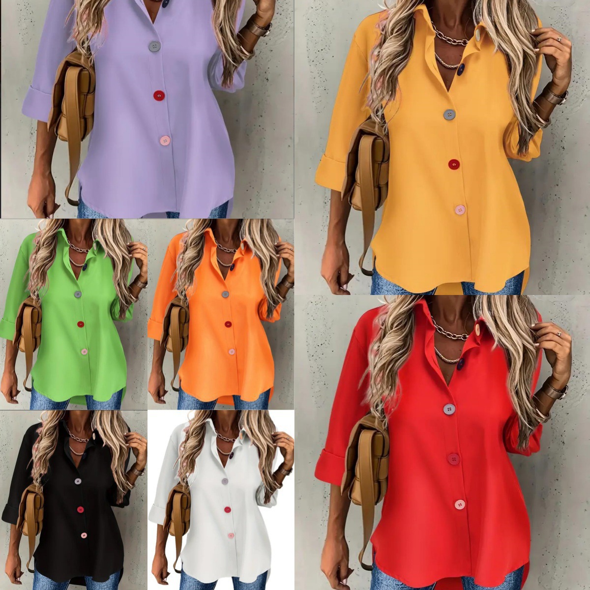 국경 간 유럽 및 미국 의류 2025 Amazon 독립 스테이션 인기 캐주얼 여성 솔리드 컬러 버튼 긴팔 셔츠 탑