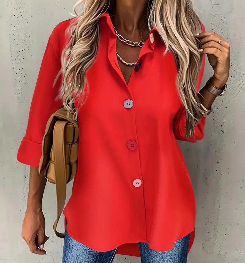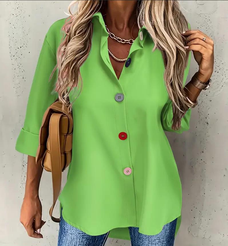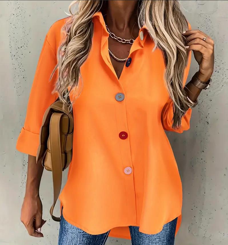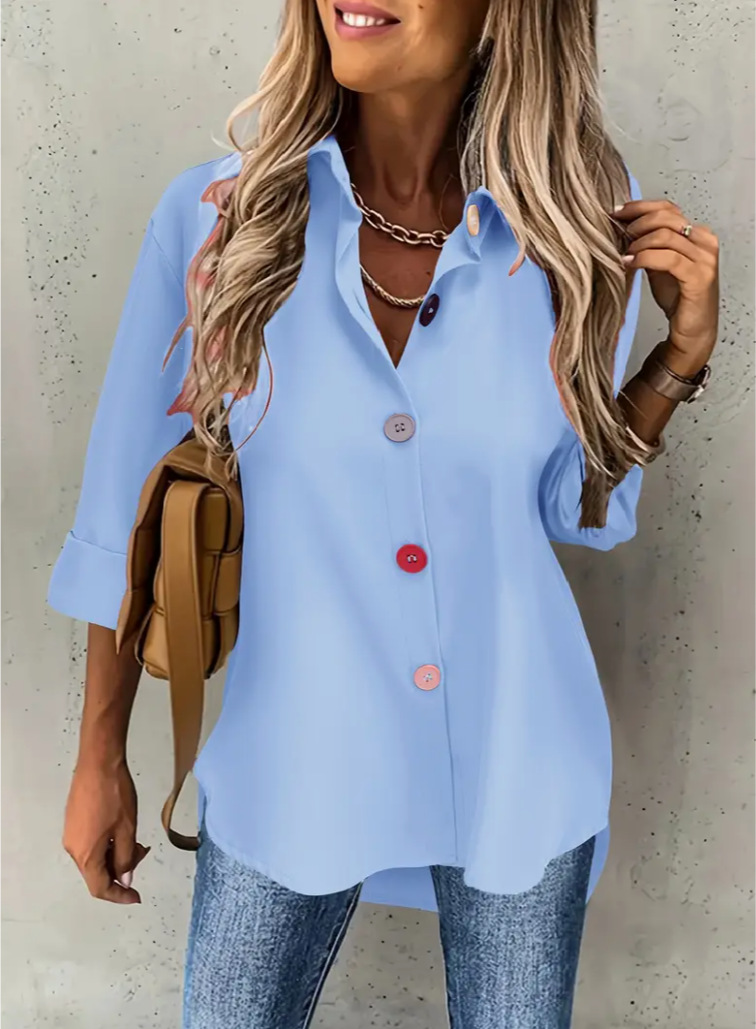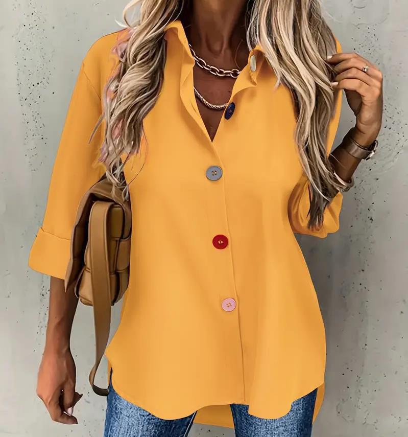 국경 간 유럽 및 미국 의류 2025 Amazon 독립 스테이션 인기 캐주얼 여성 솔리드 컬러 버튼 긴팔 셔츠 탑