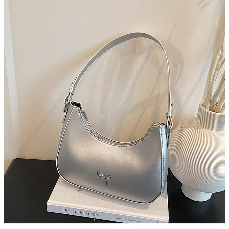 새로운 프랑스 패션 질감 2025 캐주얼 보우 장식 숙녀 복고풍 스타일 겨드랑이 싱글 어깨 크로스 바디 백 여성용