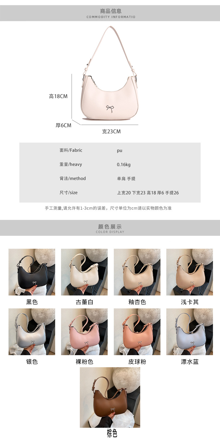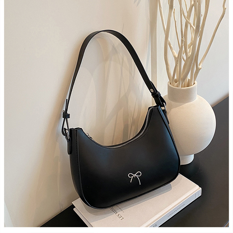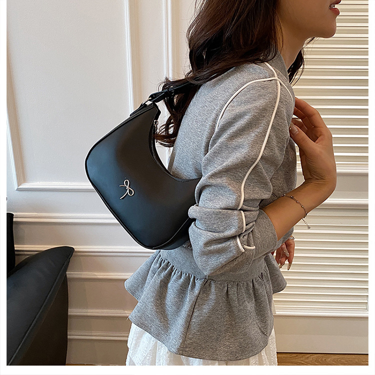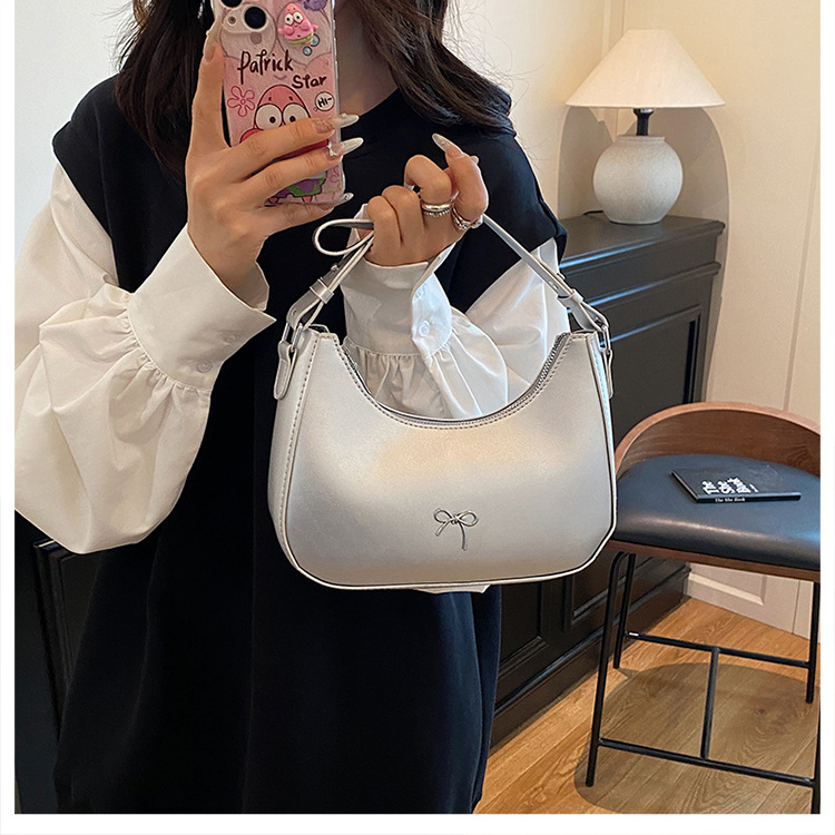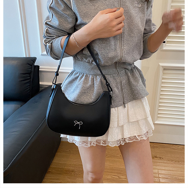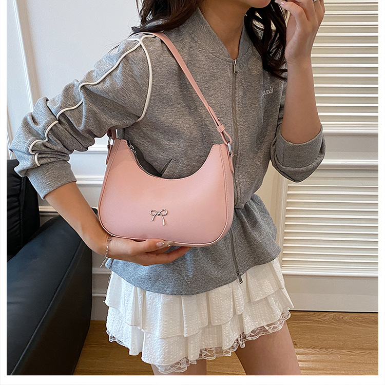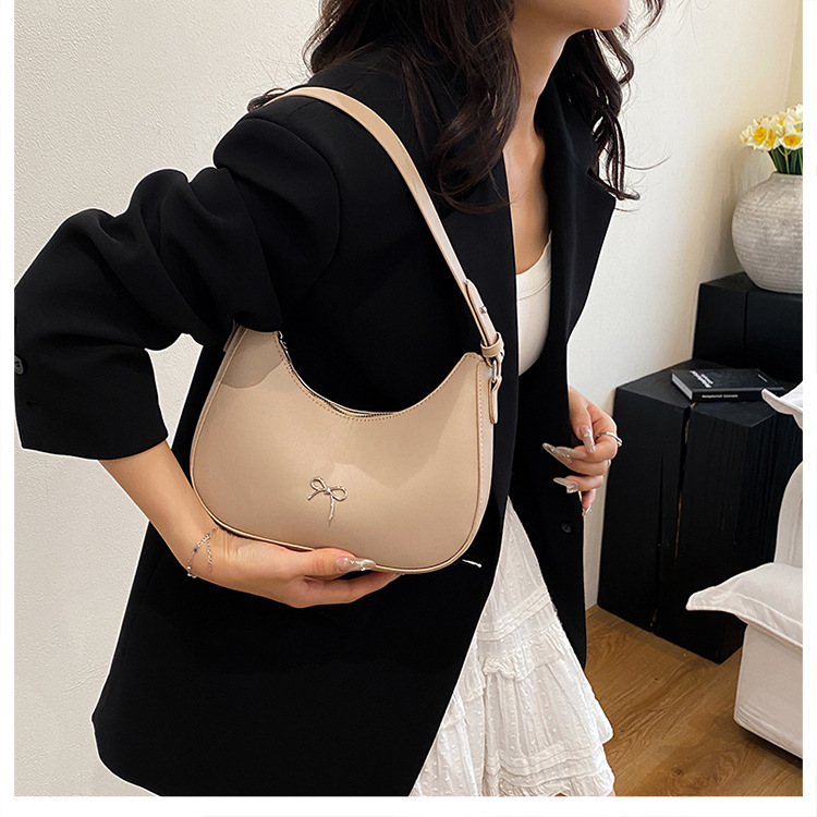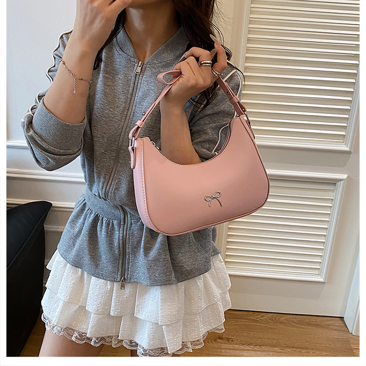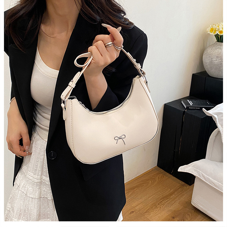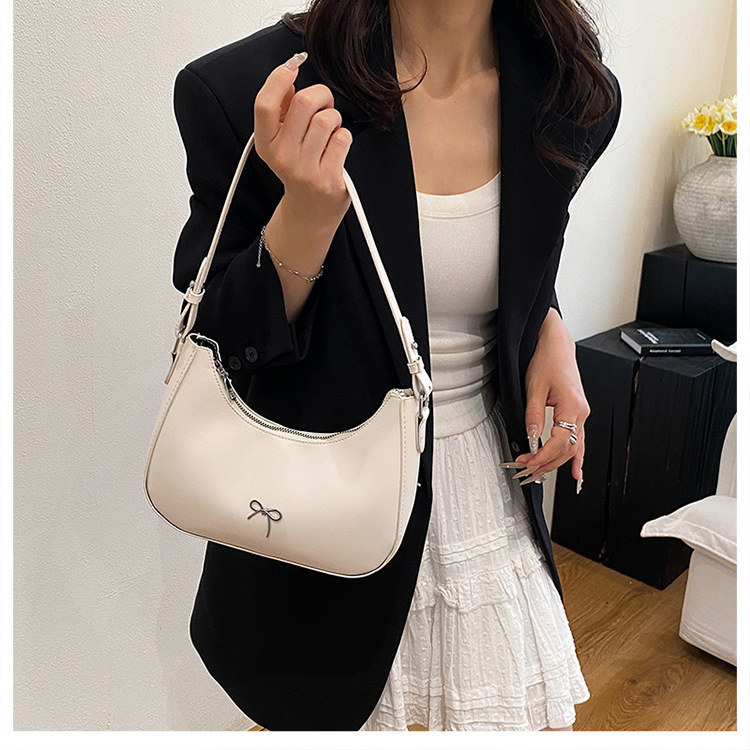 새로운 프랑스 패션 질감 2025 캐주얼 보우 장식 숙녀 복고풍 스타일 겨드랑이 싱글 어깨 크로스 바디 백 여성용스토어 가기