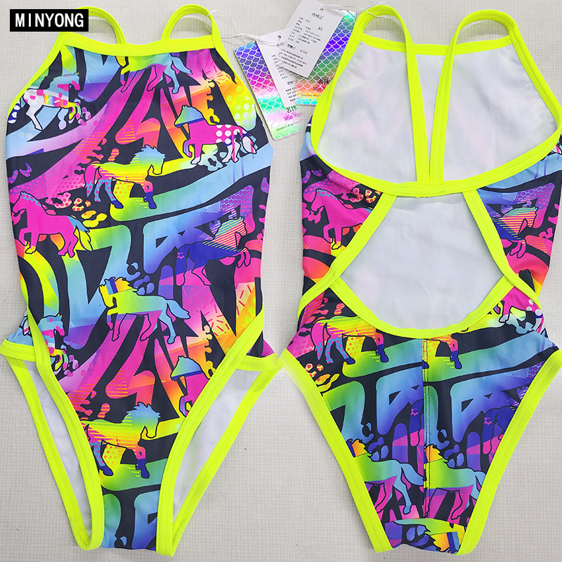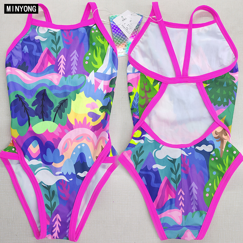 스파게티 스트랩 전문 소녀 수영복 청소년 레이싱 수영복 등이없는 훈련 물을 흘리지 않는 단일 레이어 기타스토어 가기