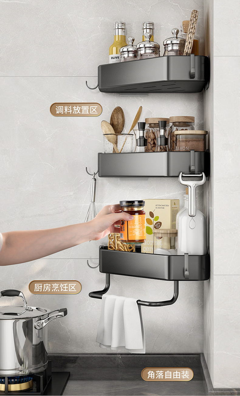 주방 조미료 보관 랙 벽걸이 형 펀치없는 코너 삼각형 코너 코너 다기능 조미료 보관 랙스토어 가기