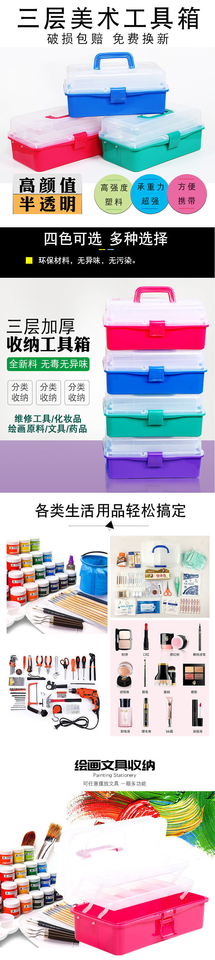대형 3층 도구 상자 미술 보관 상자 그림 보관 상자 매니큐어 플라스틱 투명 하드웨어 보관 상자