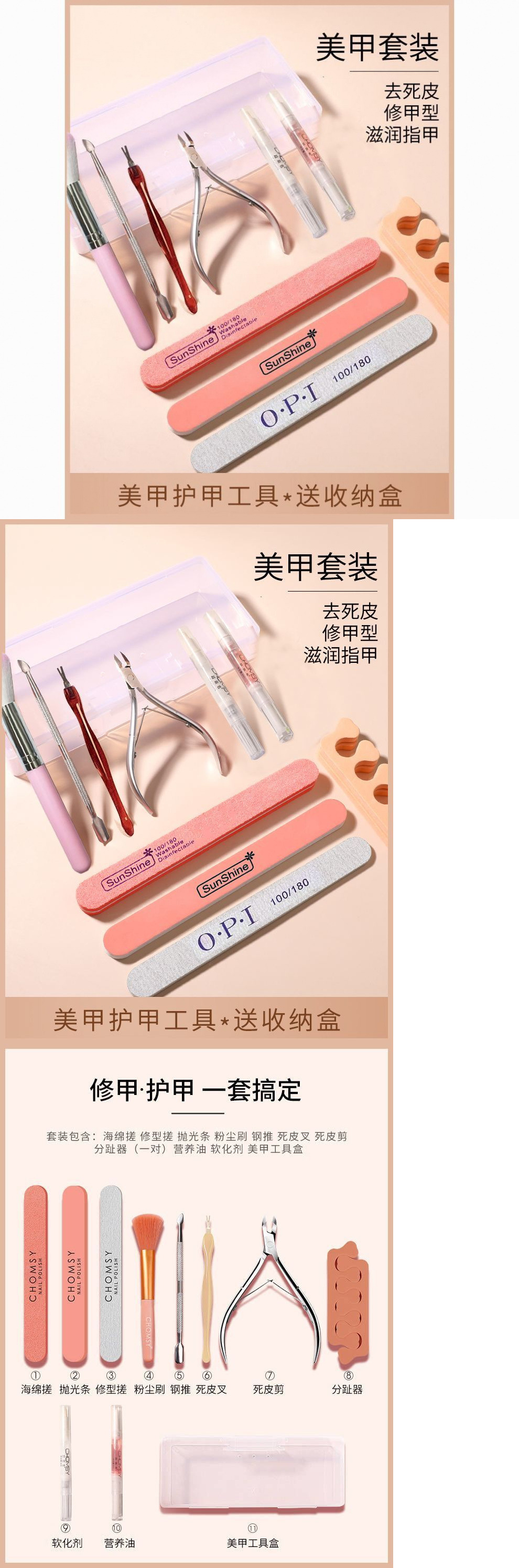 초보자를 위한 특별한 매니큐어 도구, 손톱을 꾸미는 전체 세트, 각질 제거 가위, 손톱 연마 스트립 및 마찰 스트립스토어 가기