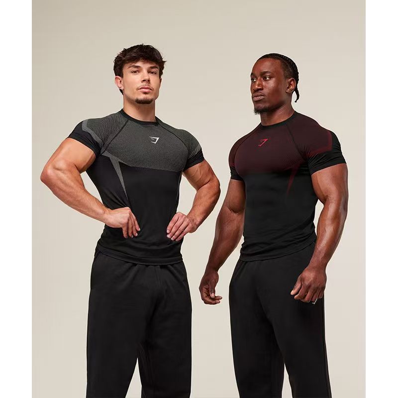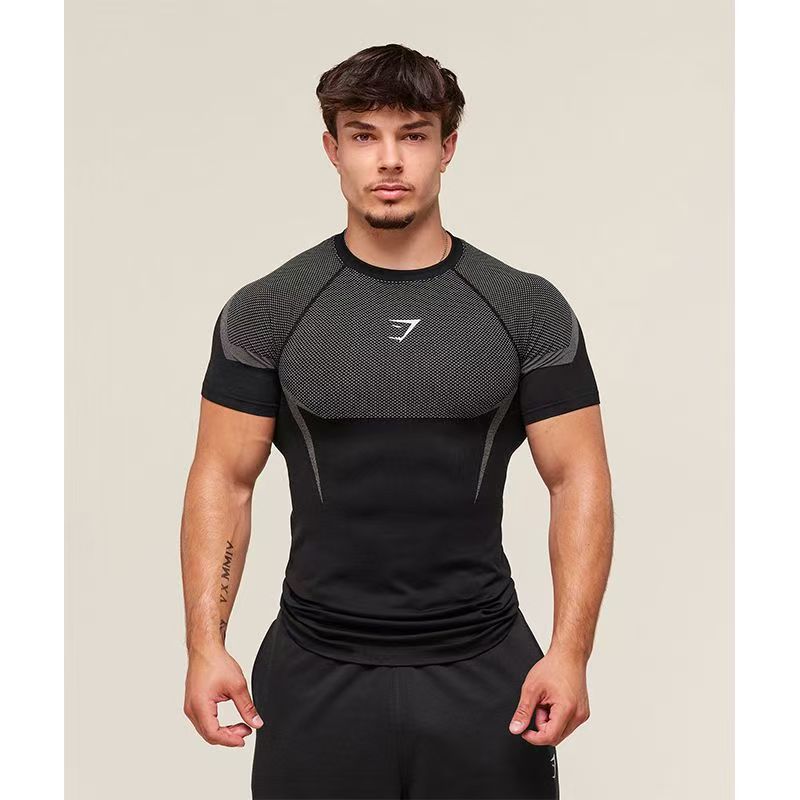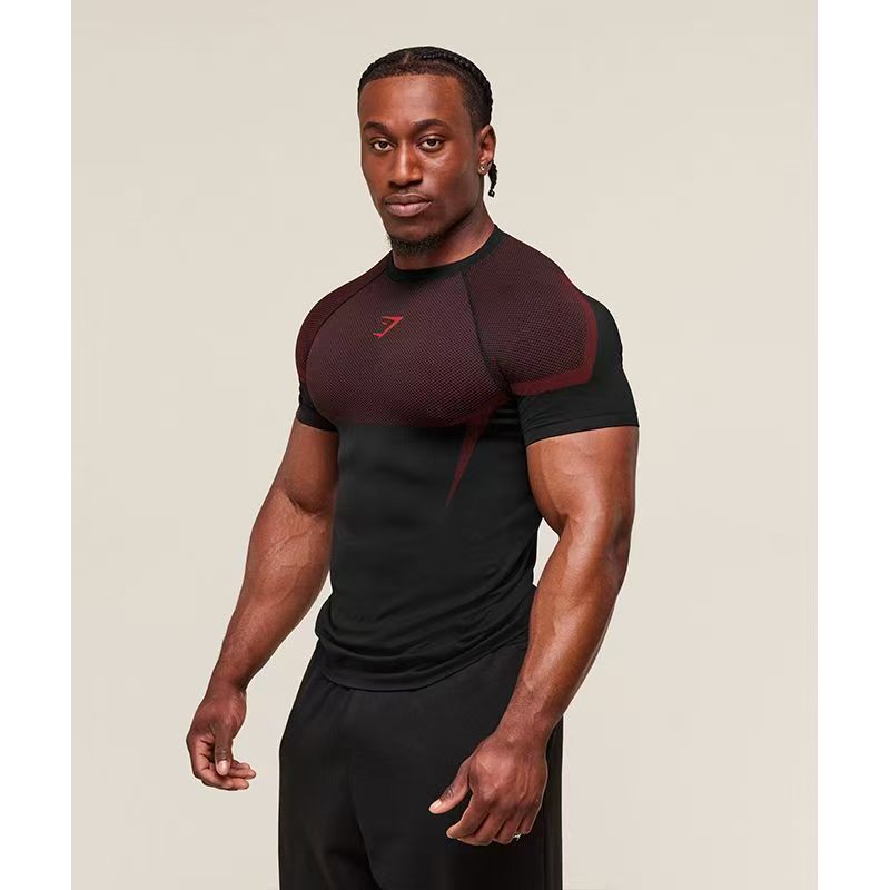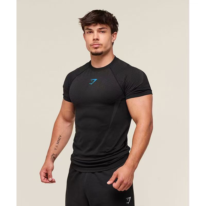 크로스 보더 근육 피트니스 스포츠 티셔츠 남성용 GYM 러닝 트레이닝 복 탄성 속건성 라운드 넥 통기성 탑 프린트스토어 가기