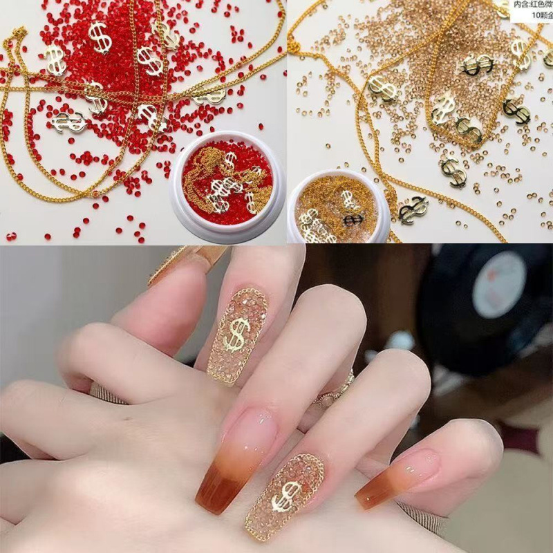 새해 레드 머니 샴페인 컬러 재벌 소재 기질 금 네일 아트 초극세 체인 네일 장식 액세서리스토어 가기