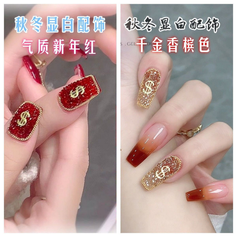 새해 레드 머니 샴페인 컬러 재벌 소재 기질 금 네일 아트 초극세 체인 네일 장식 액세서리