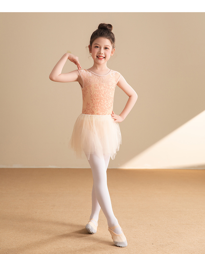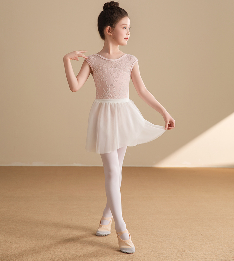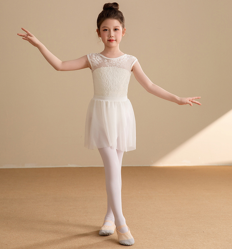 Judy 어린이 발레 연습복 소녀 중국 무용 점프 슈트 어린이 여름 체조 복장 거즈 스커트스토어 가기