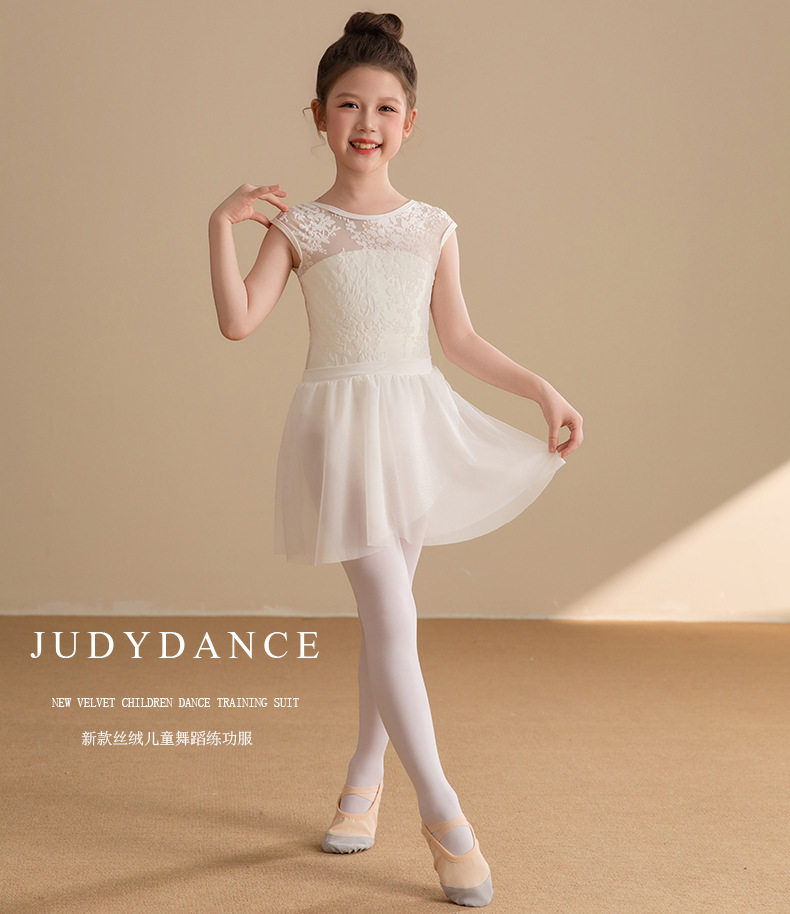 Judy 어린이 발레 연습복 소녀 중국 무용 점프 슈트 어린이 여름 체조 복장 거즈 스커트