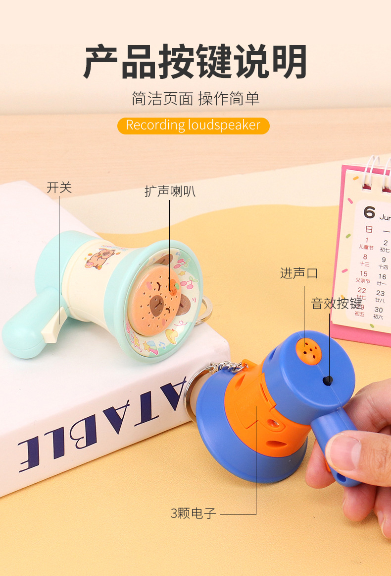시끄러운 스피커 키 체인 펜던트 다기능 미니 레코더 확성기 학생 학교 가방 가방 어린이 장난감