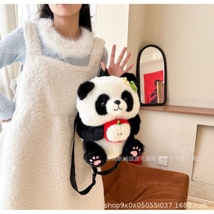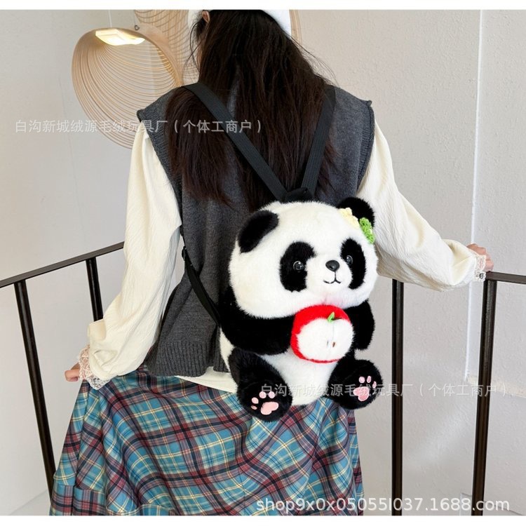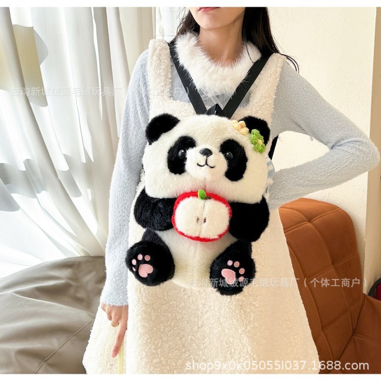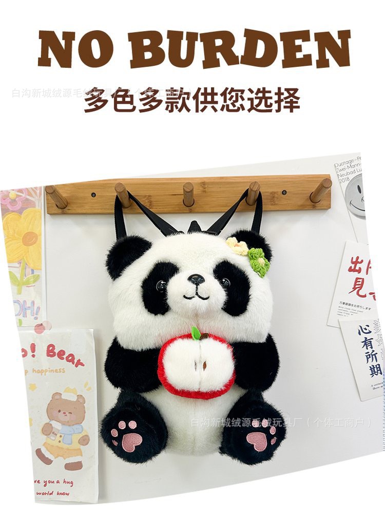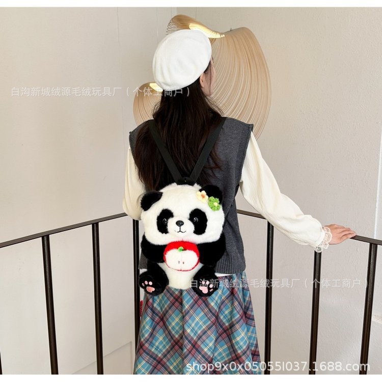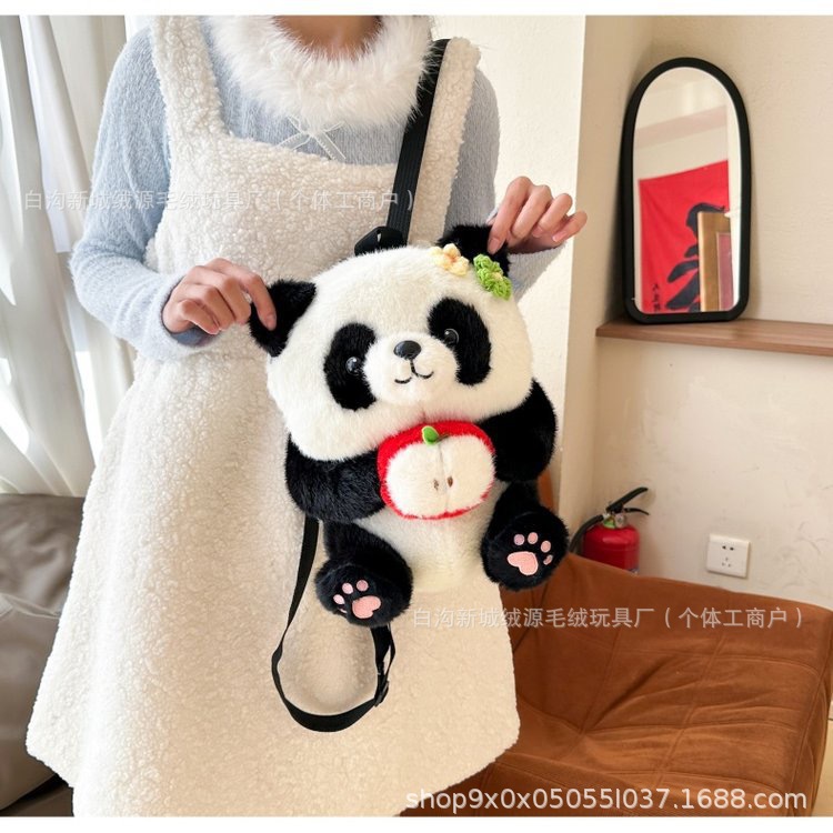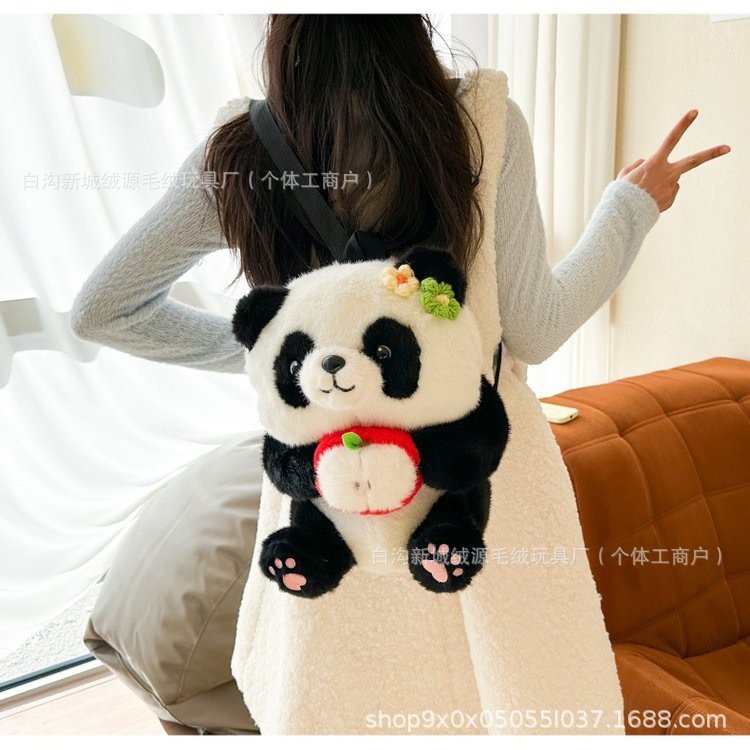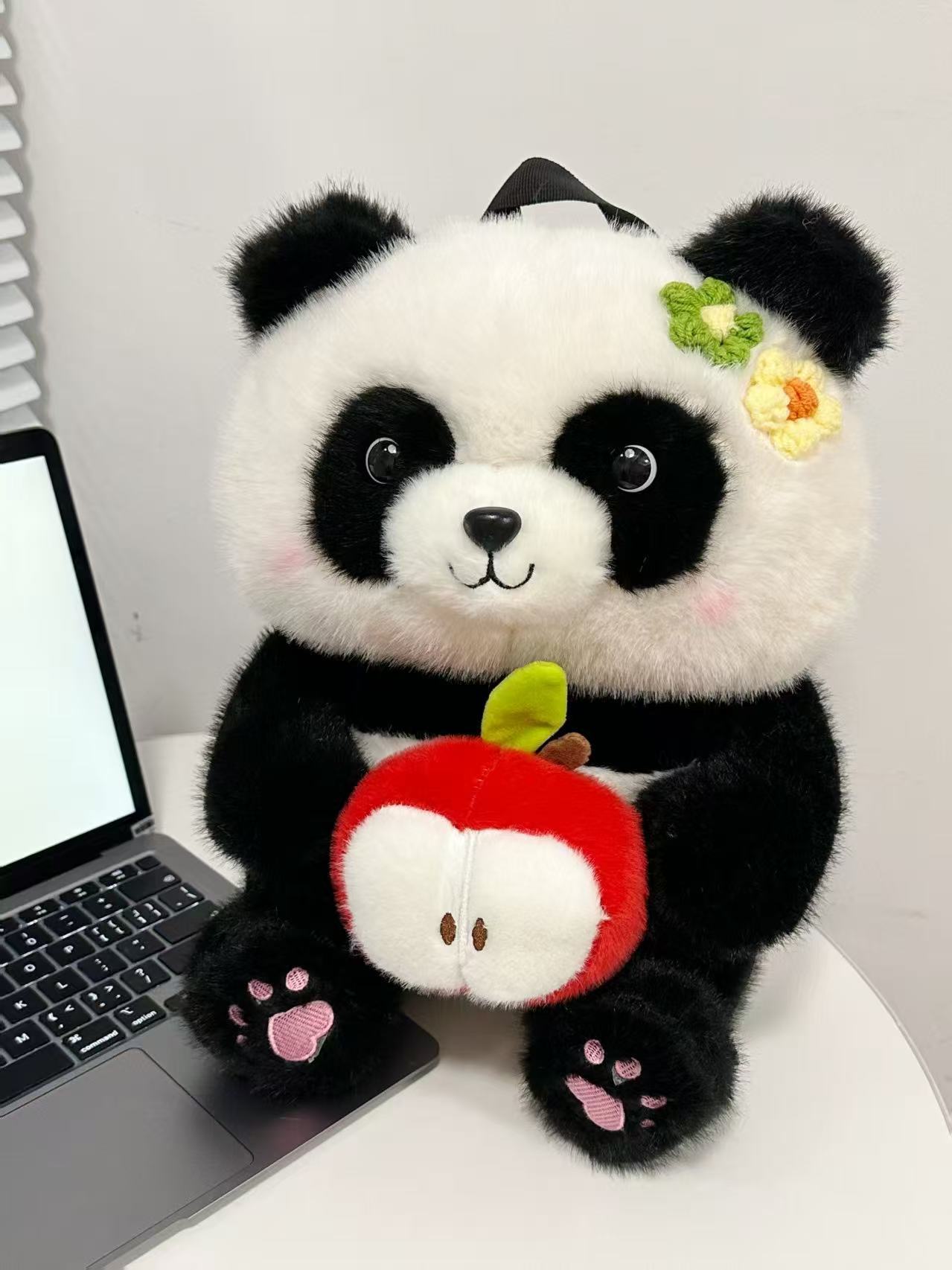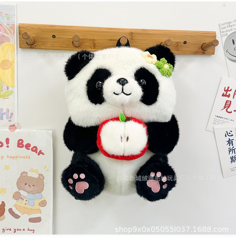 Panda Base의 동일한 스타일의 꽃과 사과 플러시 인형 배낭 새로운 귀여운 만화 인형 선물