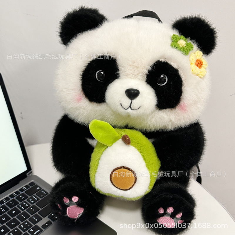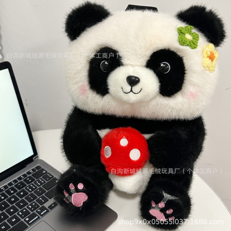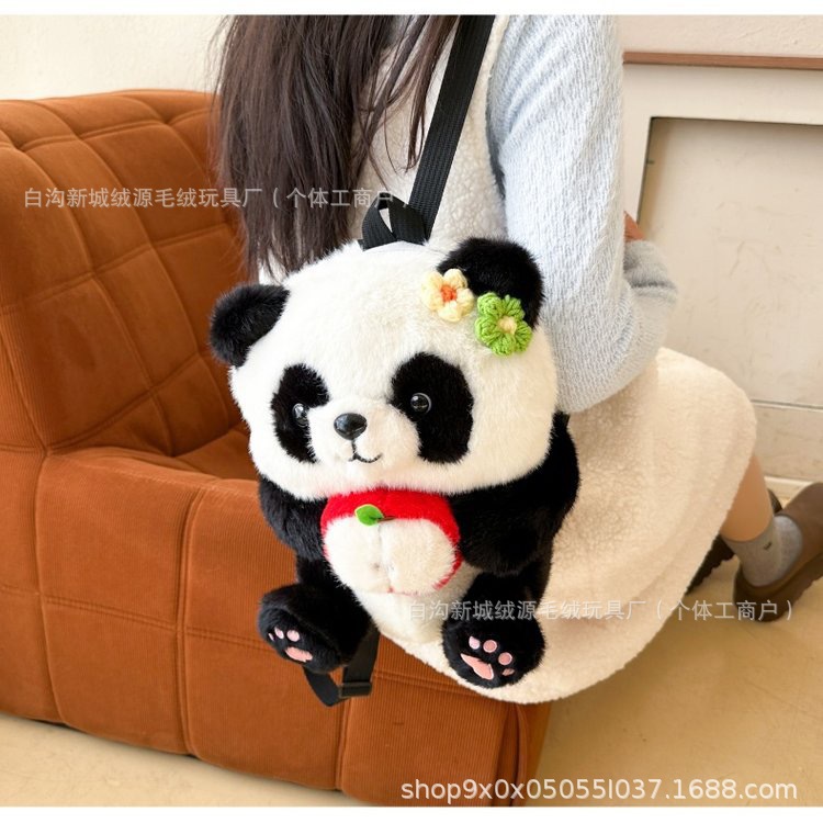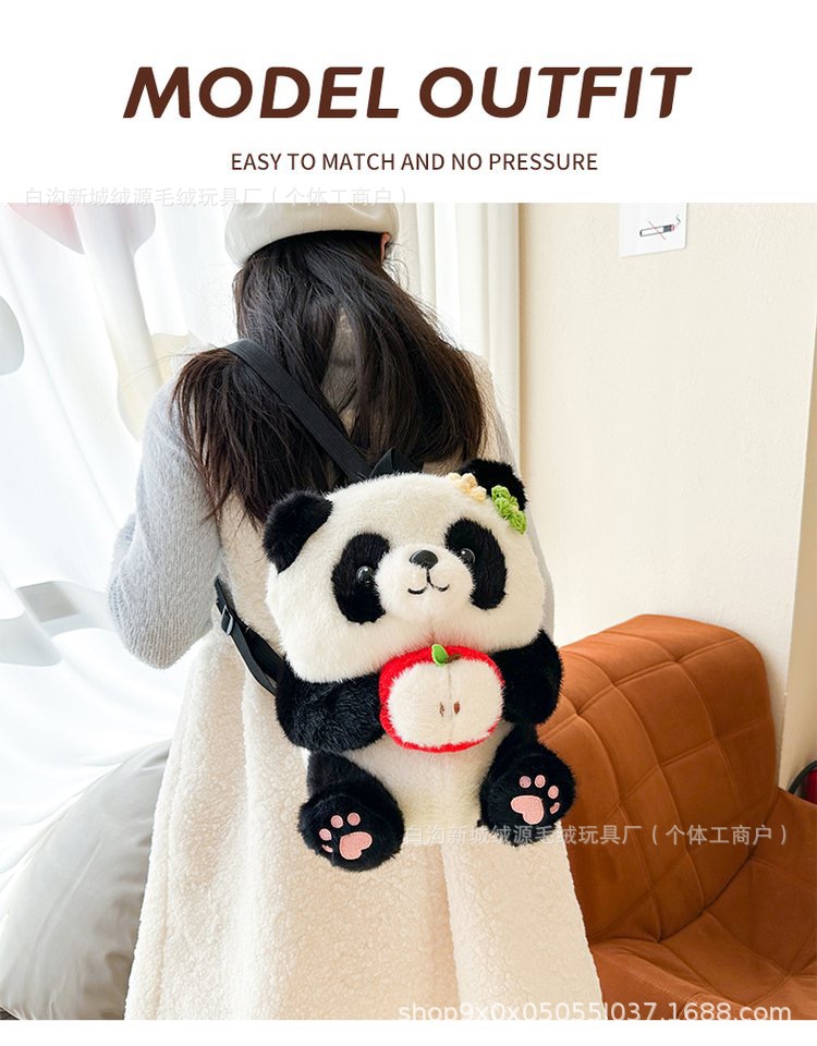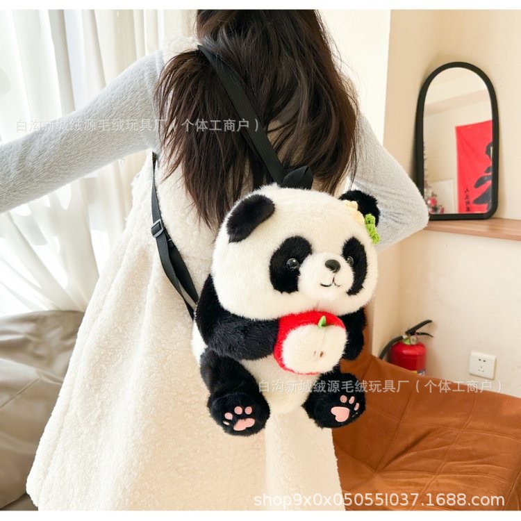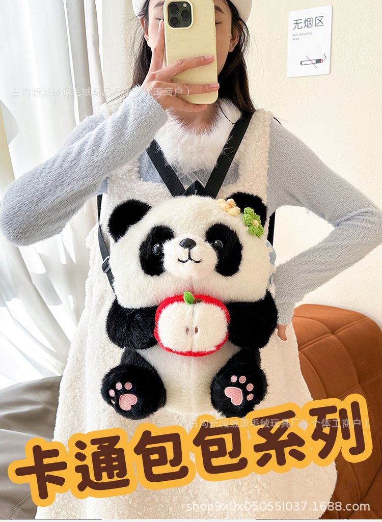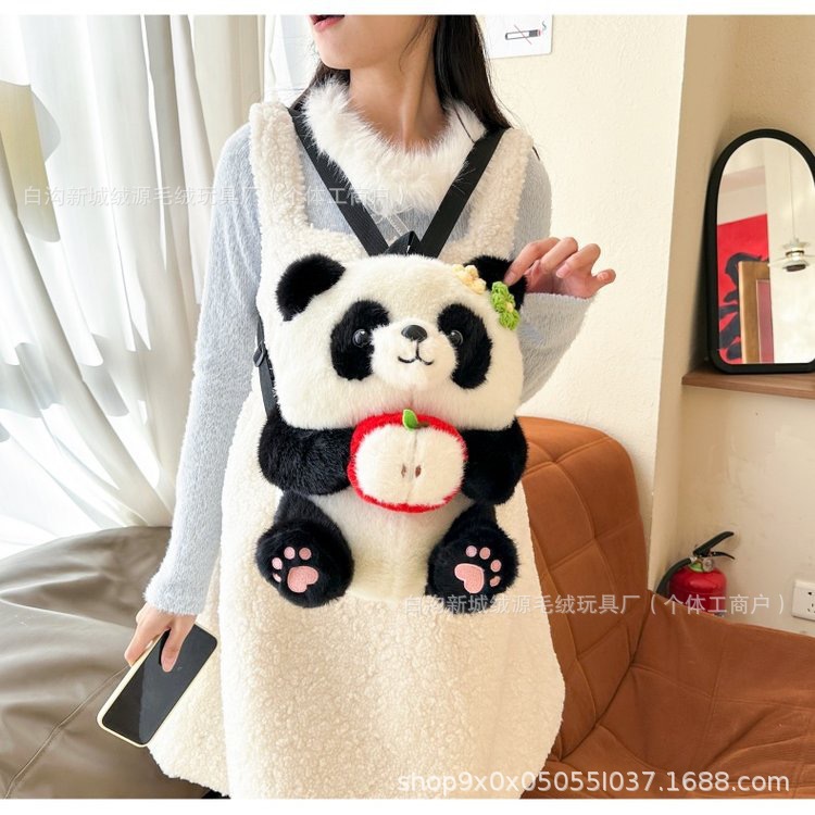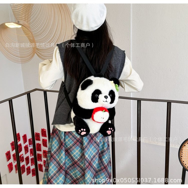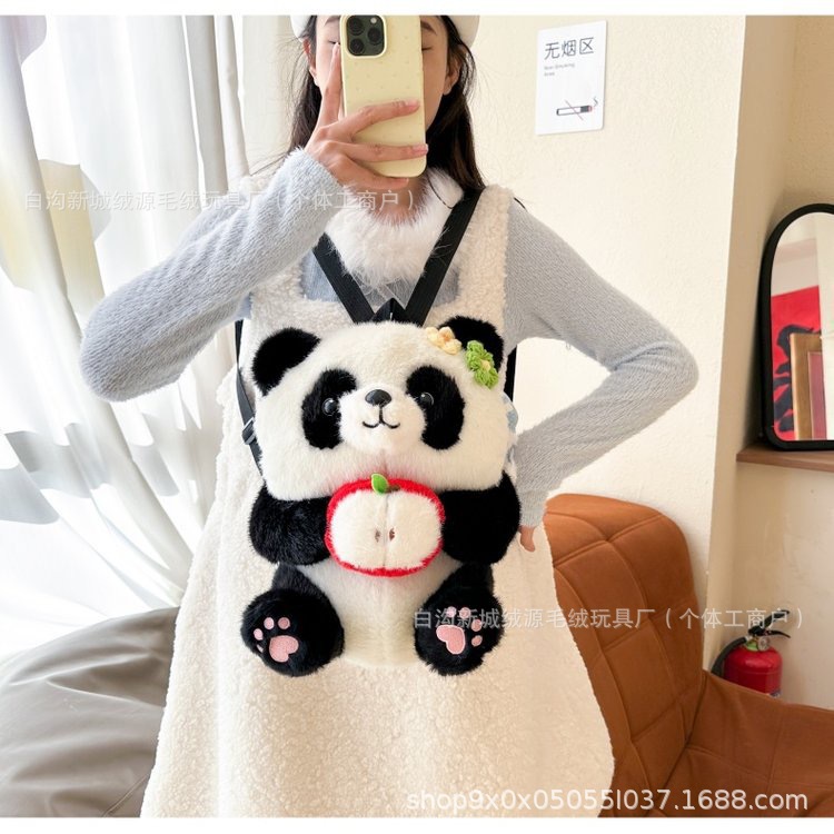 Panda Base의 동일한 스타일의 꽃과 사과 플러시 인형 배낭 새로운 귀여운 만화 인형 선물
