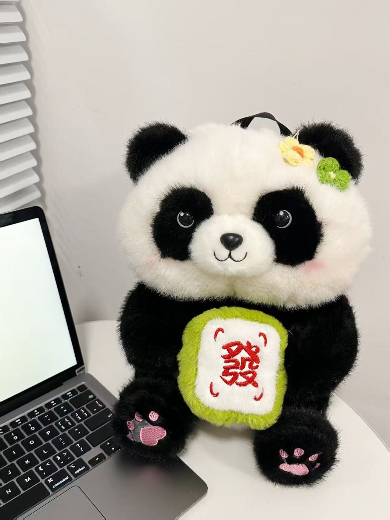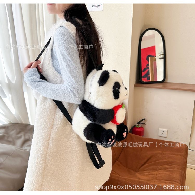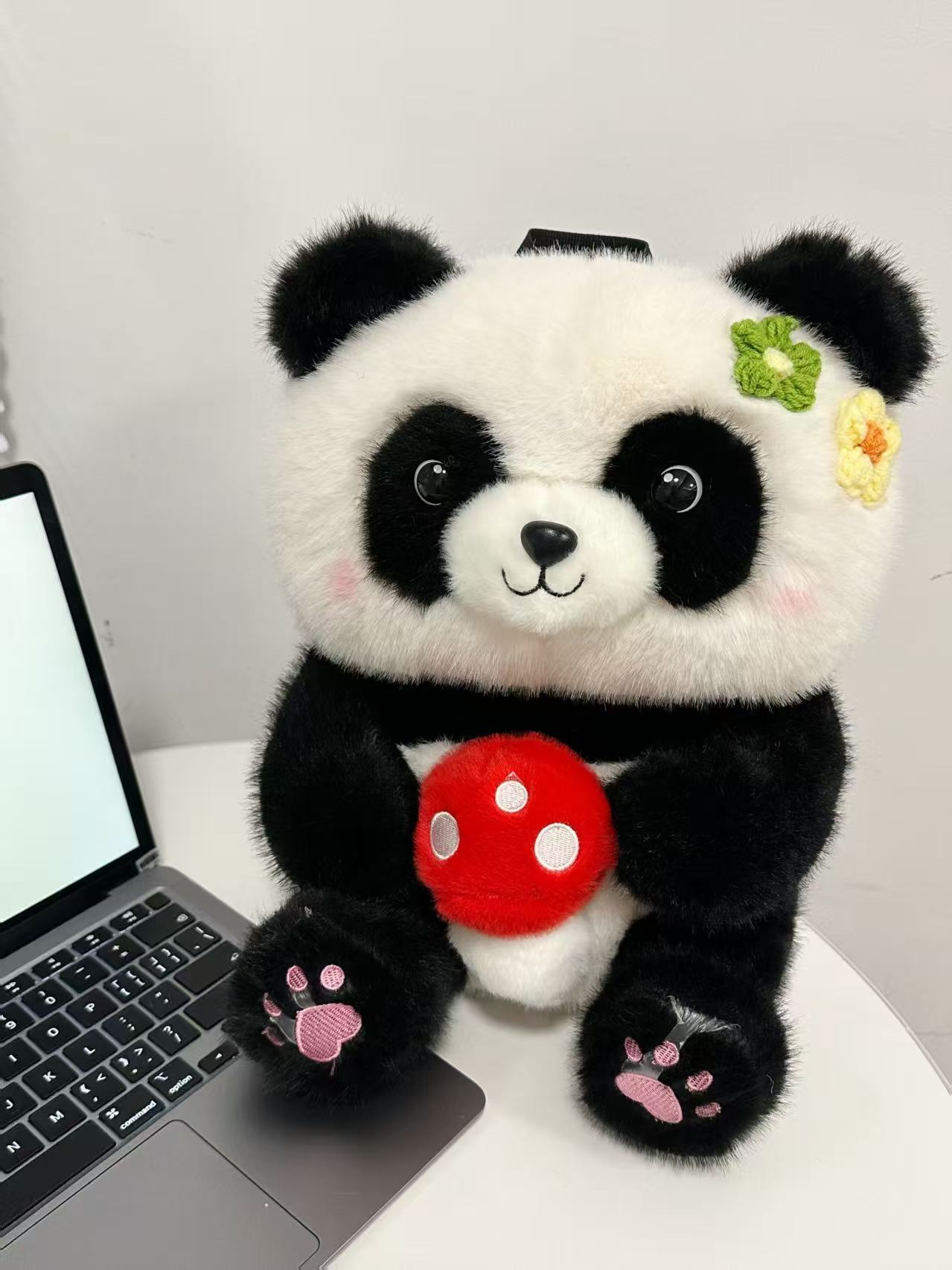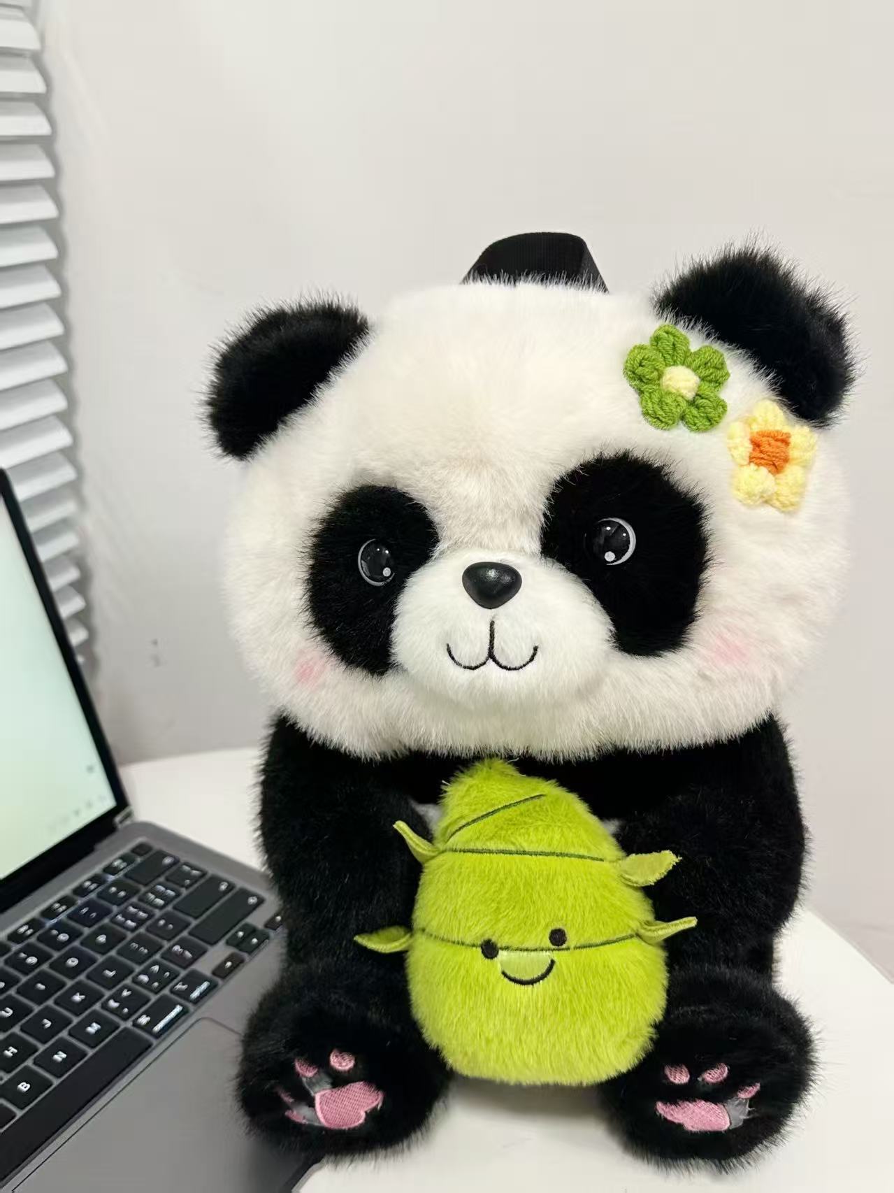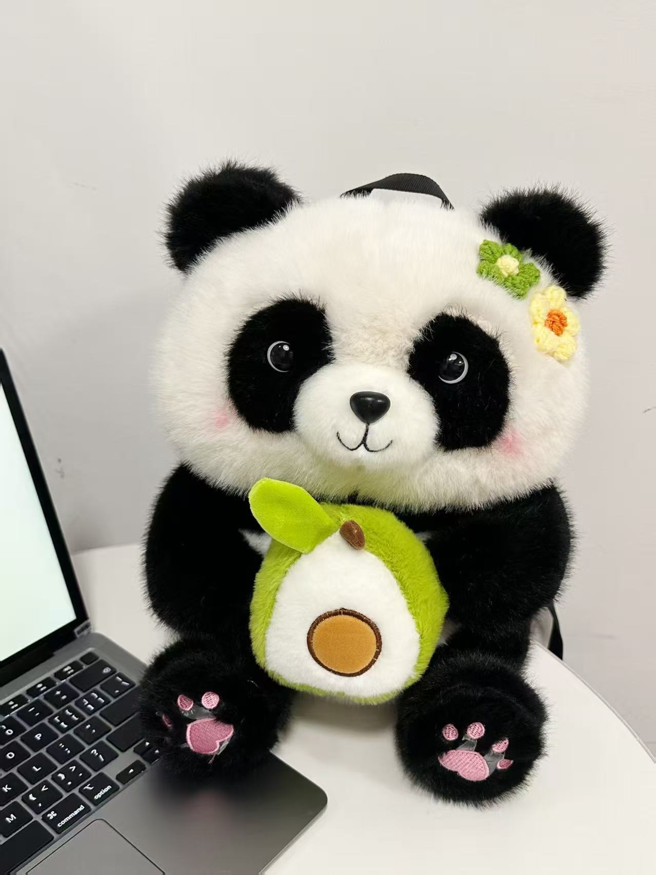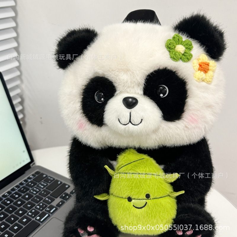 Panda Base의 동일한 스타일의 꽃과 사과 플러시 인형 배낭 새로운 귀여운 만화 인형 선물