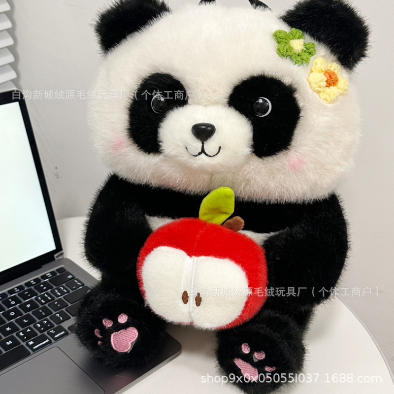 Panda Base의 동일한 스타일의 꽃과 사과 플러시 인형 배낭 새로운 귀여운 만화 인형 선물스토어 가기