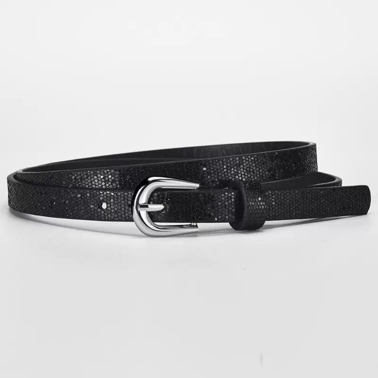 어린이 패션 스팽글 장식 얇은 핀 버클 PU 벨트 여성의 고급 트렌디 청바지 벨트 도매