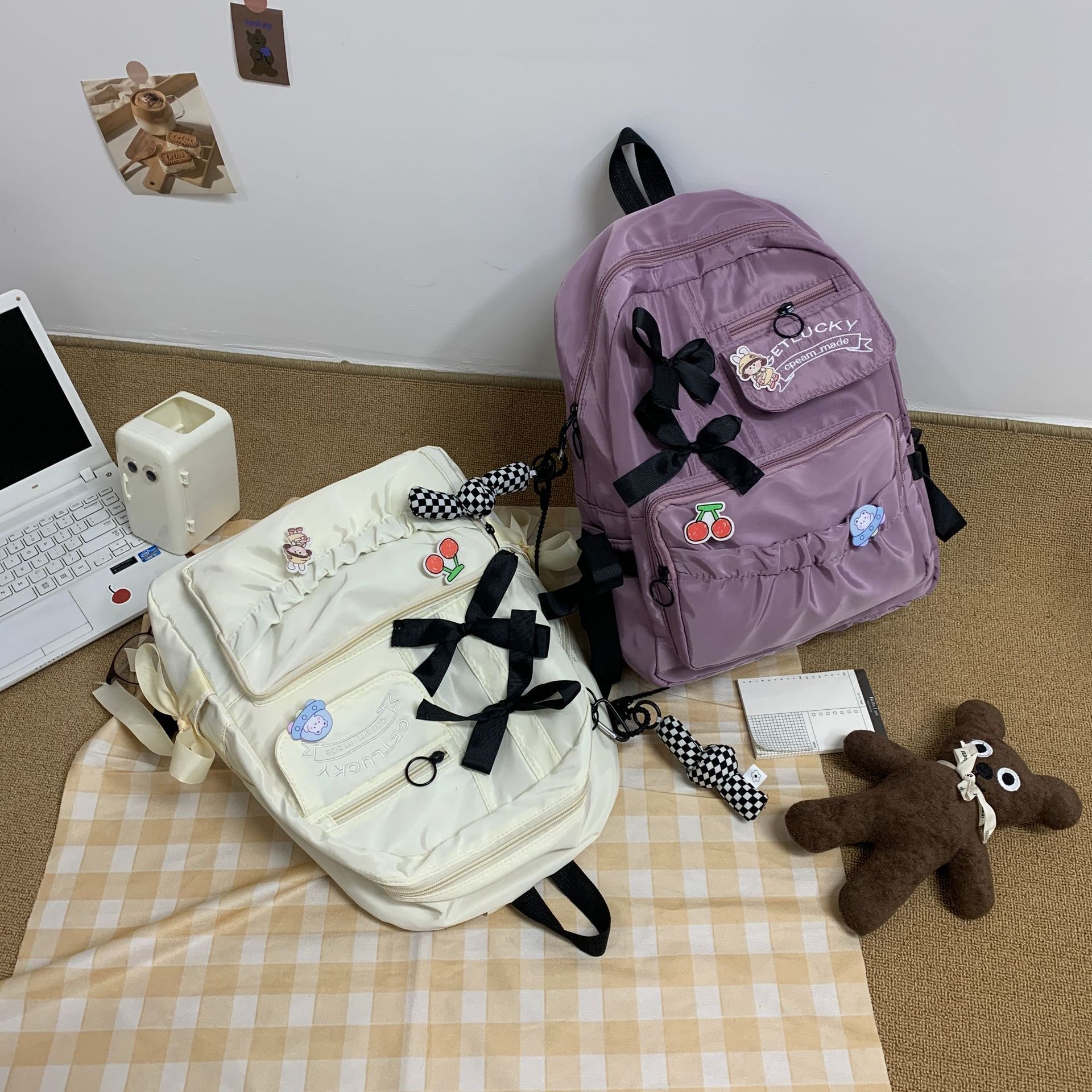 Ins 하라주쿠 스타일 보우 소녀 학교 가방 여성 새로운 한국어 버전 대용량 배낭 고등학교 대학생 배낭스토어 가기