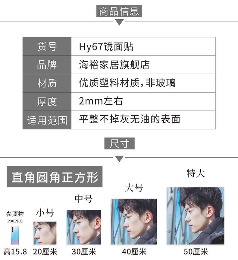 벽걸이형 거울, 접착식 전신거울, 화장거울, 아크릴 소프트거울, 욕실 기숙사용 가정용 거울