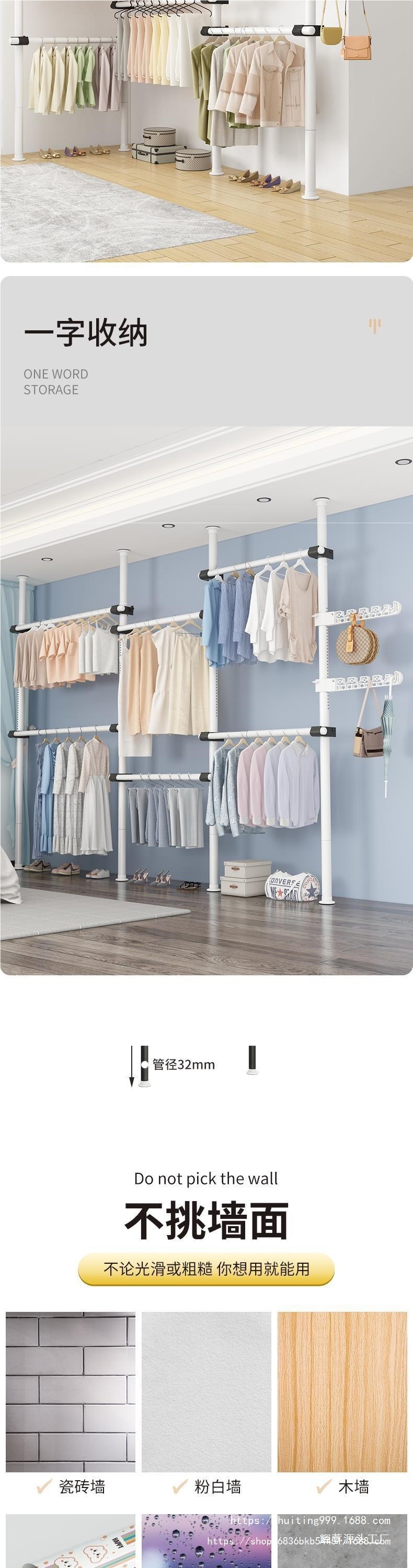 기숙사용 천장형 옷장, 가정용 플로어스탠딩 펀치프리 옷걸이, 텔레스코픽 옷걸이, 코트걸이, 발코니 옷걸이 MC스토어 가기