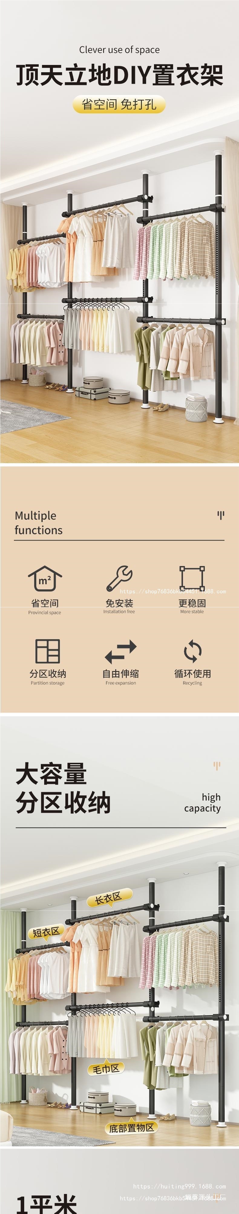 기숙사용 천장형 옷장, 가정용 플로어스탠딩 펀치프리 옷걸이, 텔레스코픽 옷걸이, 코트걸이, 발코니 옷걸이 MC
