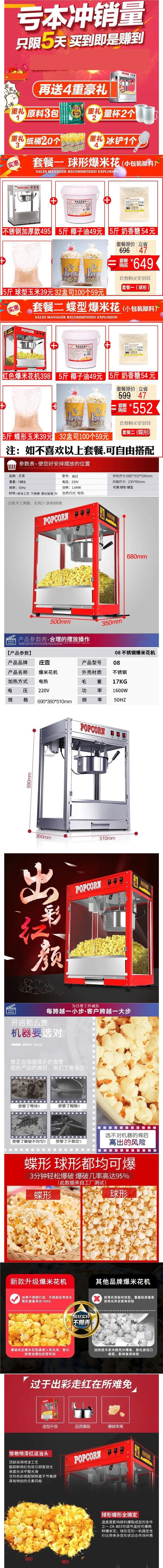 팝콘 기계 상업용 완전 자동 팝콘 기계 소형 전기 팝콘 기계 전기 노점 판매점