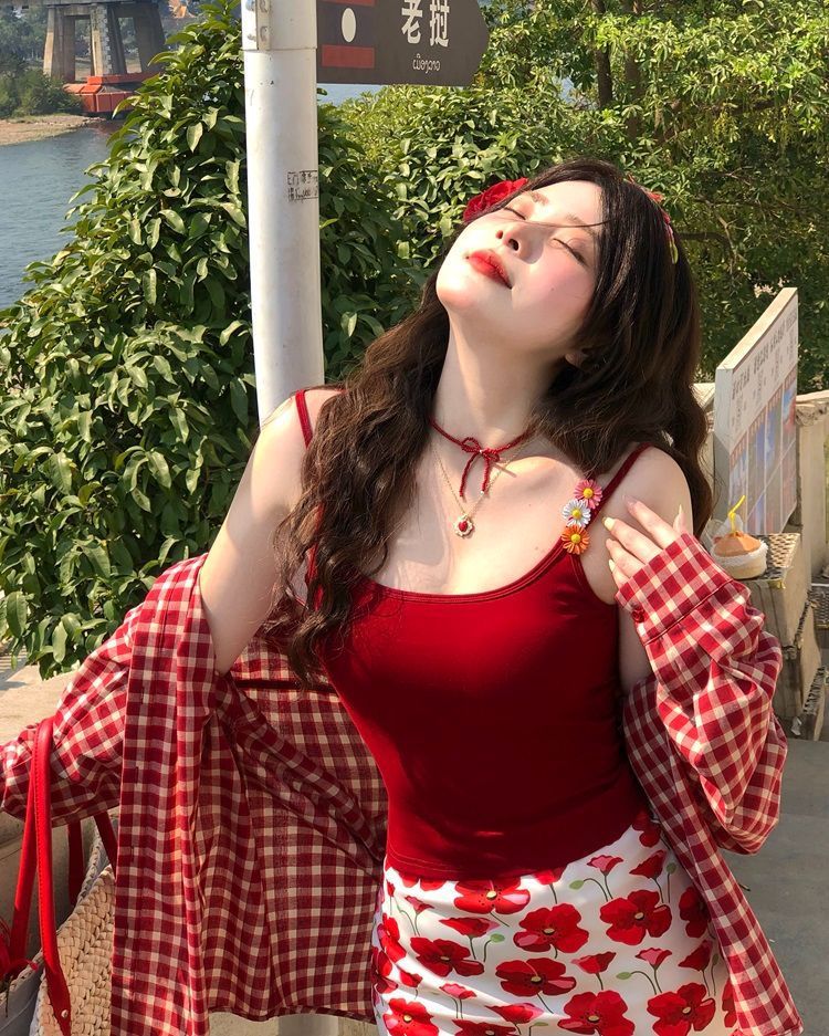여성용 가슴 패드가 있는 도파민 의류 세트 캐미솔 여름 하이 웨이스트 프린트 스커트 힙 커버 스커트 투피스 세트스토어 가기